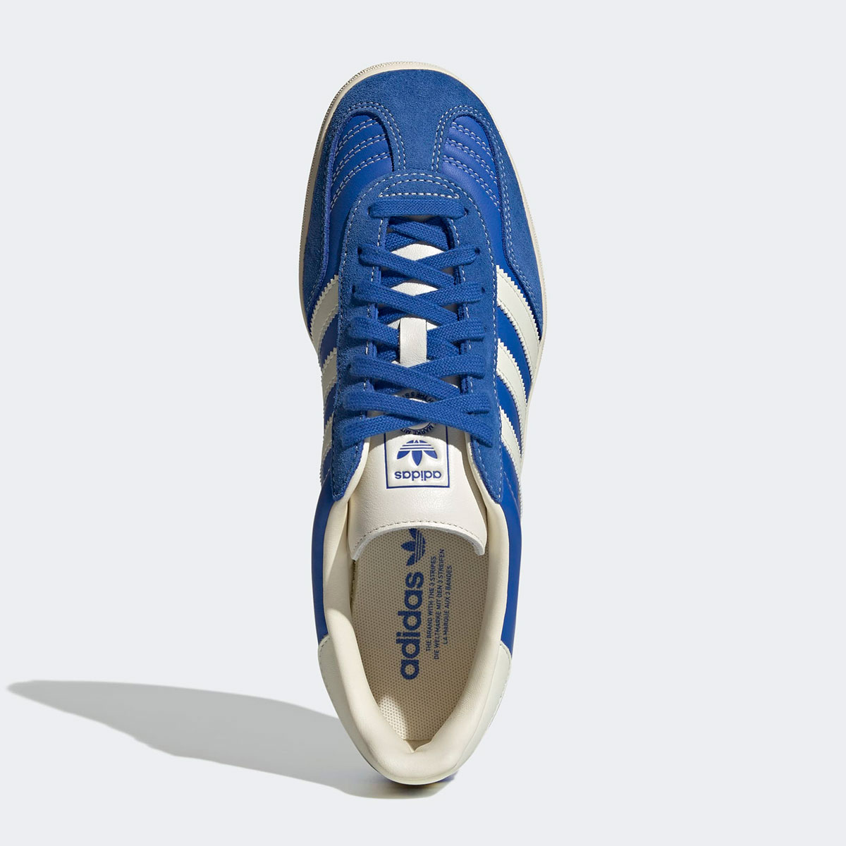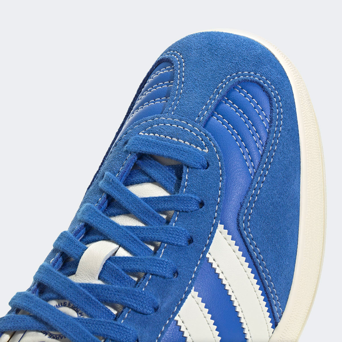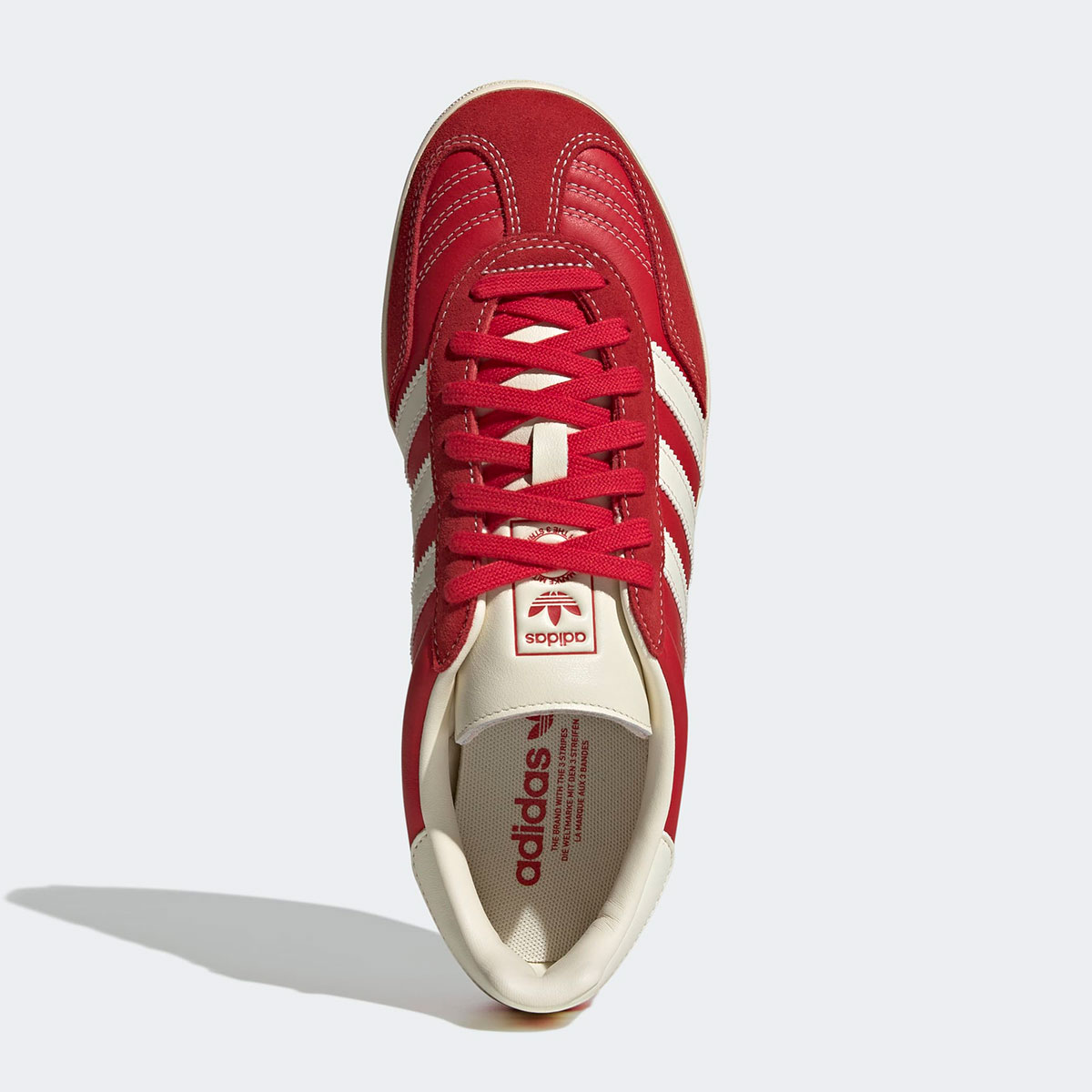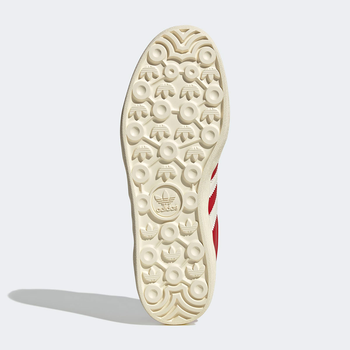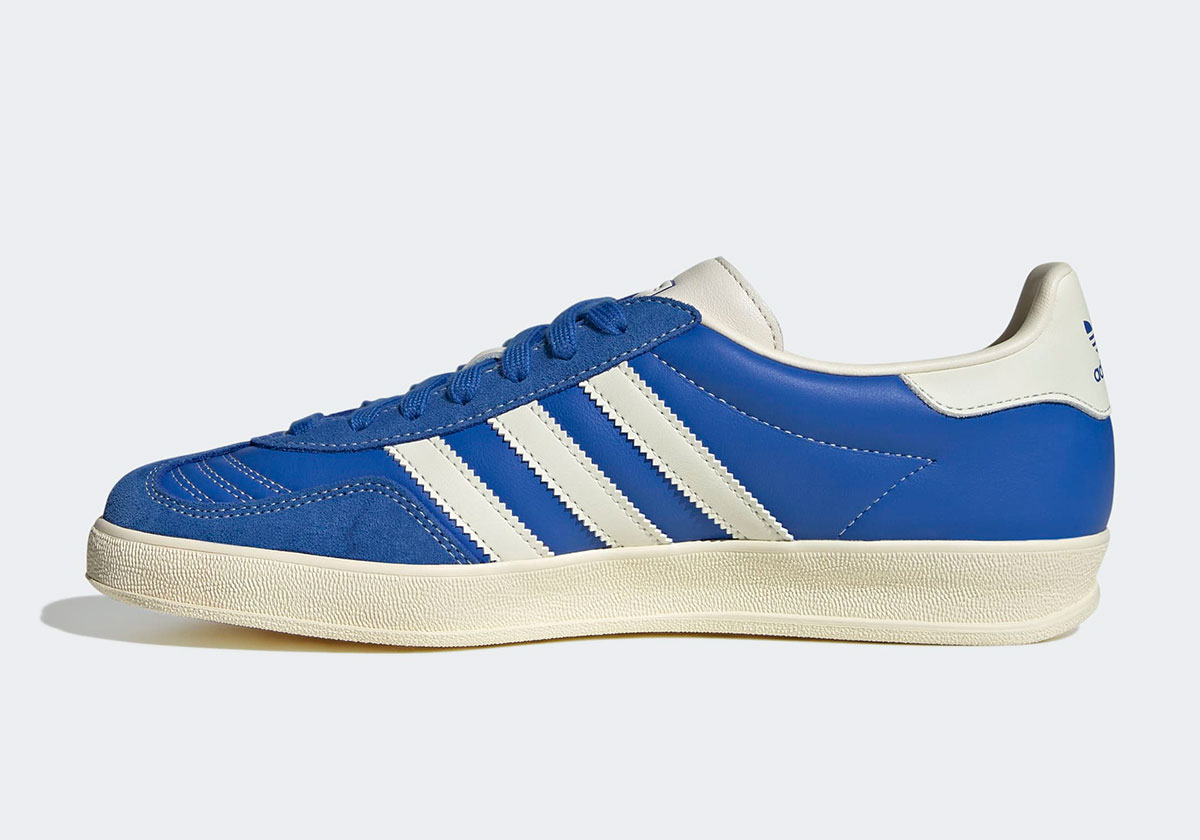 While every Gazelle Indoor is inherently tied to the beautiful game, some feature more soccer-inspired qualities than others. This style is made unique by curved stitching under the t-toe, evoking a common hallmark of retro football boots. The base is cut from leather for a more premium edge, while the t-toe and eyelet panels appear in their usual suede. Dual-tone “Royal Blue” and “Scarlet Red” colorways are on top, both of which feature contrasting cream hits on the stripes, backtab, lining, tongue, and sole.