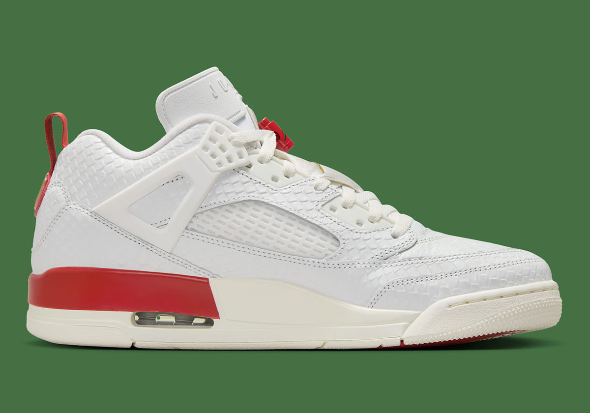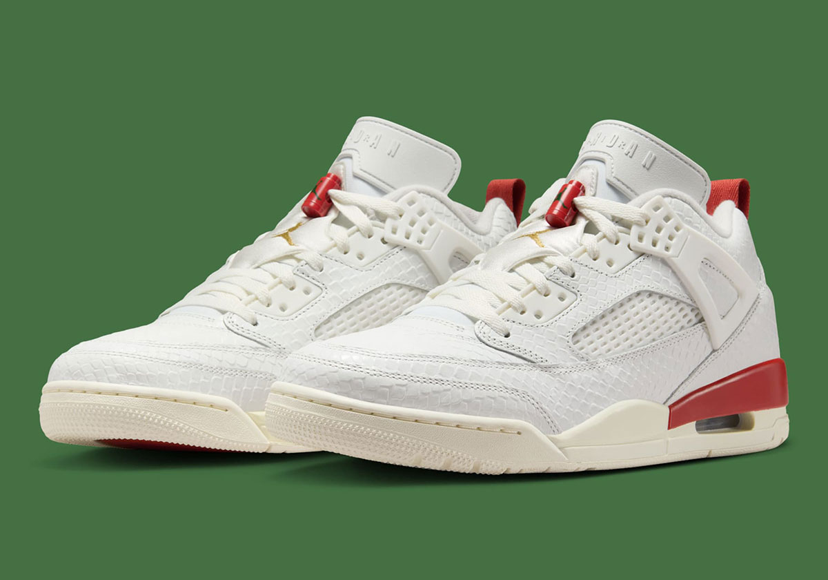 The Jordan Spiz’ike Low “Summit White/Dragon Red/Pine Green/Metallic Gold” retails for $165 and is expected to releases Fall 2025, meaning before the end of September at the latest. See official images below if you’re considering adding these to your rotation.