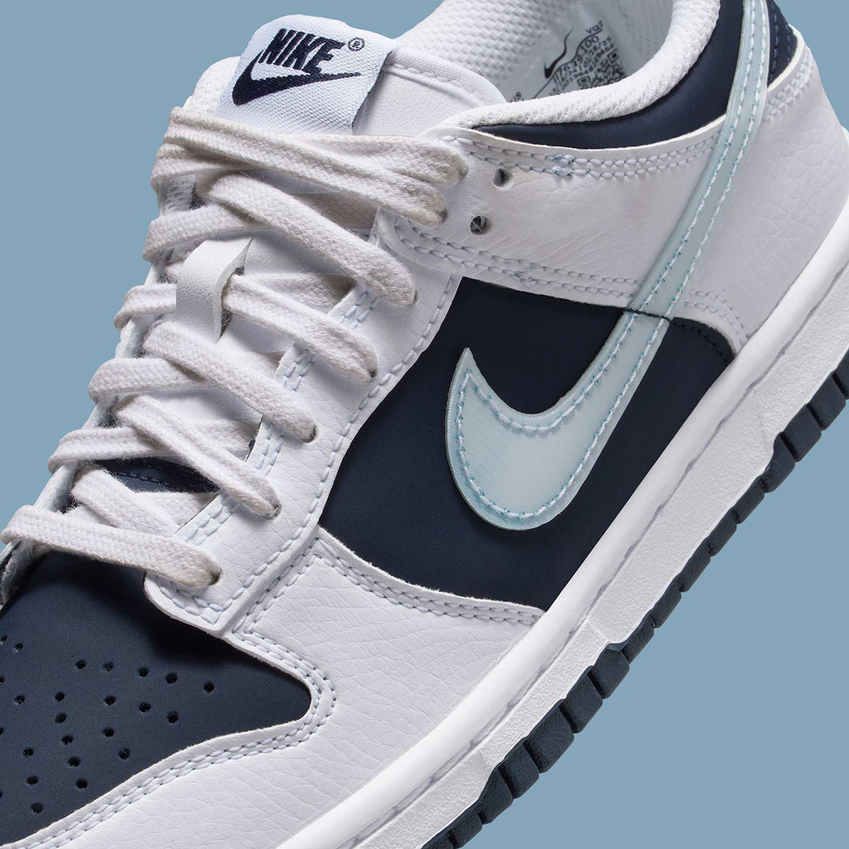 Here we have an icy colorway featuring a lenticular Swoosh logo in “Light Armory Blue,” bringing tactile vinyl material to an all-leather upper. The base layer and outsole appear in dark “Obsidian,” while the overlays and midsole clean up in white. As one last touch, the insoles tie in with the lenticular Swoosh with a unique “Deep Royal Blue” mirror graphic.