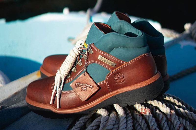 Timberland has linked up with Tokyo-based label The Apartment to create an ocean-traversing Field Boot, dubbed "The Old Man and the Sea."Toasting to the 15th anniversary of The Apartment's Kichijoji shop, the silhouette is inspired by Ernest Hemingway's 1952 novella, The Old Man and the Sea, with references to the original Field Boot, born in 1983.Nodding to popular East Coast styles in the early 2000s, the design features an all-leather midsole with a color-switching pattern. The upper is composed of emerald green nubuck, with mixed in classic brown leather. The side panels and tongue boast sea-inspired motifs, while the insole and back tag house The Apartment logo alongside Timberland's signature iconography. Rounding out the design specs, the laces are meant to evoke a boat's mooring ropes.The Field Boot marks the latest development in the duo's collaborative rolodex. The brands previously joined forces on a Heritage GTX Moc Toe Mid, which employed a brown leather and green suede upper, with a GORE-TEX® membrane.Timberland and The Apartment's "The Old Man and The Sea" Field Boot will launch on March 20 via the brands' webstores. The product will be priced at ¥23,100 JPY. Take a closer look at the design in the gallery above.Click here to view full gallery at Hypebeast