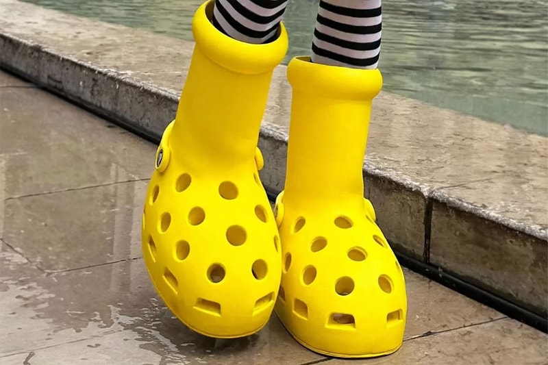 Leave it to MSCHF to create internet-breaking footwear moments as it has manufactured Air Force 1-inspired silhouettes, kicks that you can rock from the front and back as well as its unforgettable Big Red Boots. And now the brand has made another statement at this summer's Paris Fashion Week by tapping TOMM¥ €A$H to debut its zany Crocs Big Yellow Boots collaboration.