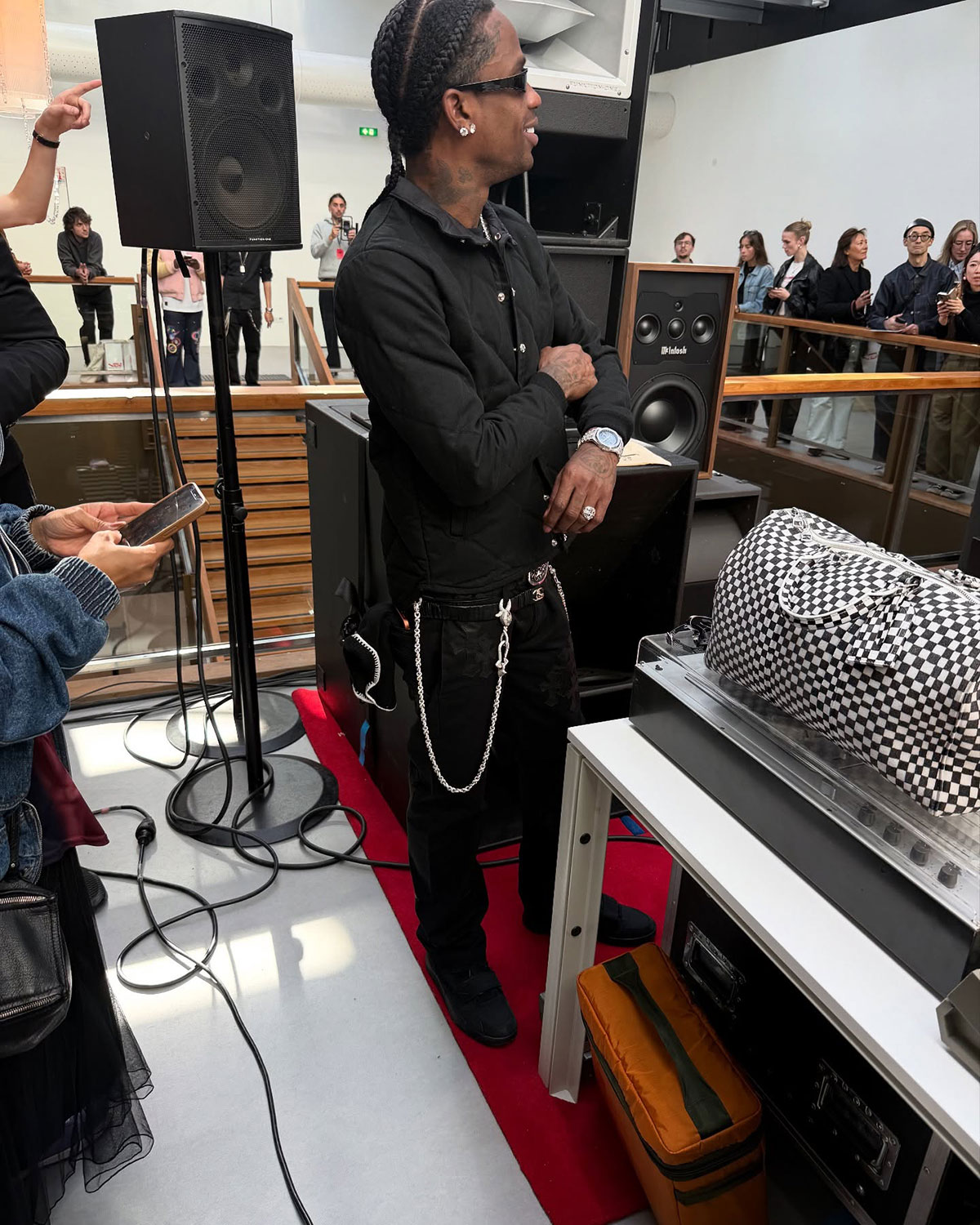 Travis Scott shoes are back on the menu. The Travis Scott Fragment Jordan 1 Low is set to make a late-year push to enter “best of 2025” discussions, and the Houston MC is back to lighting up the newswire with on-foot previews. Continuing to sport his once-cancelled “Shy Pink” at various functions, he turned to his signature roster for his latest, previewing a never-before-seen “Triple Black” Jordan Jumpman Jack colorway.