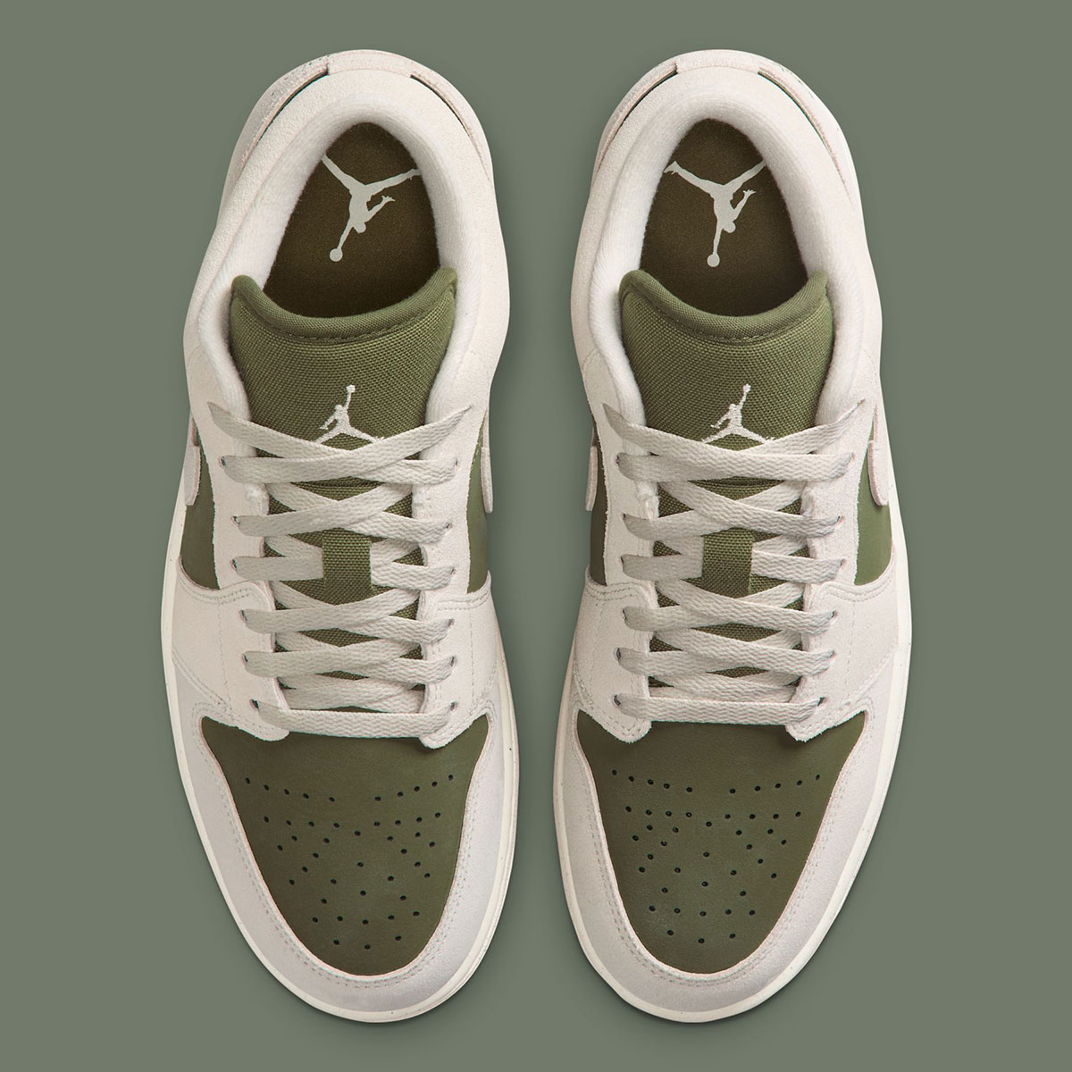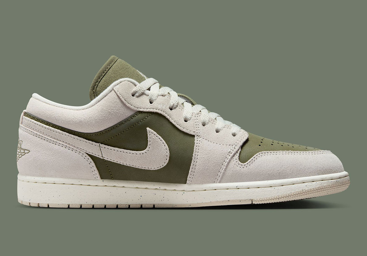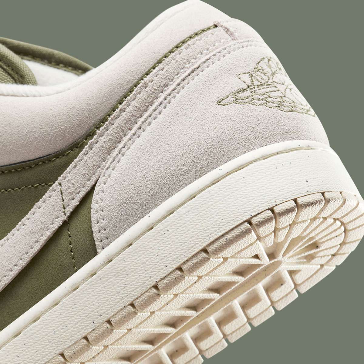 Sharing a title with a 2024 Travis Scott Jordan 1 Low, the sneaker features supple “Medium Olive” leather on the toe box and quarter. The collar, Swoosh logos, and overlays are all cut from “Light Orewood Brown” suede, followed by a white midsole and “Sail” outsole underfoot. This is an SE release, meaning the materials used should be of a higher quality than your average GR.