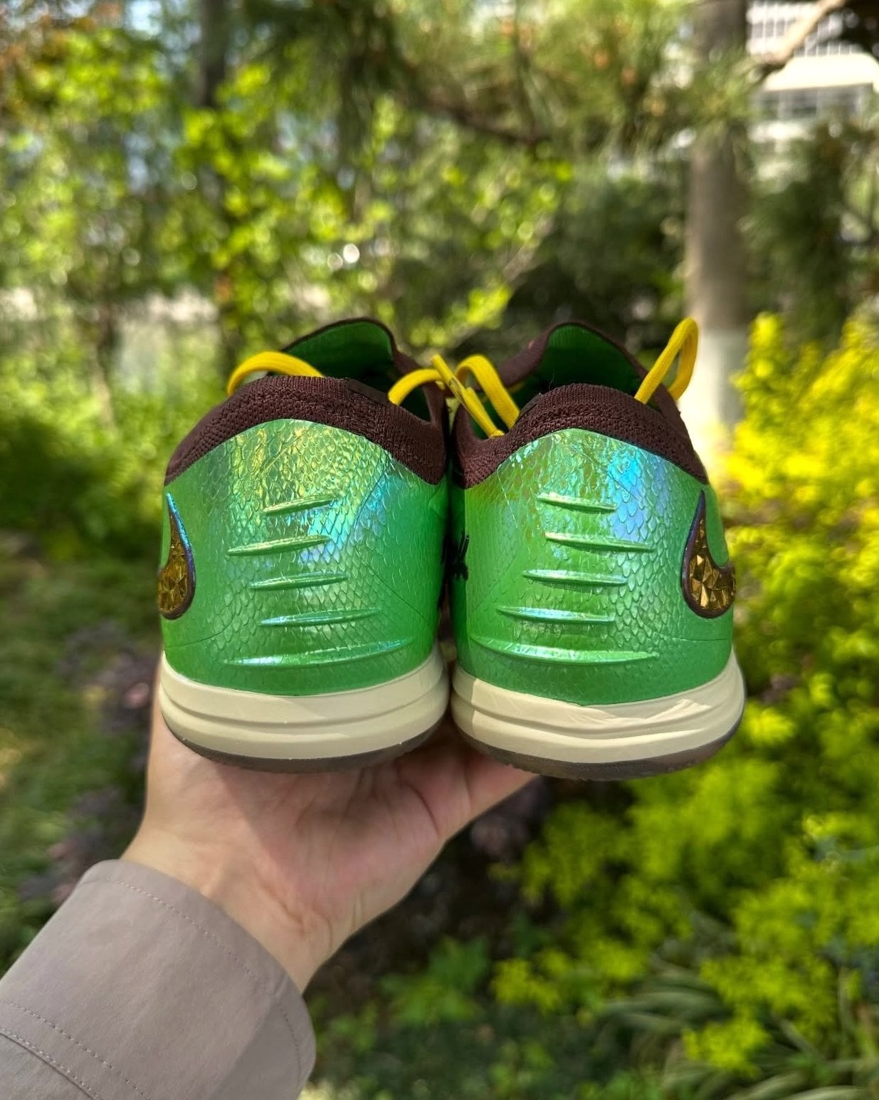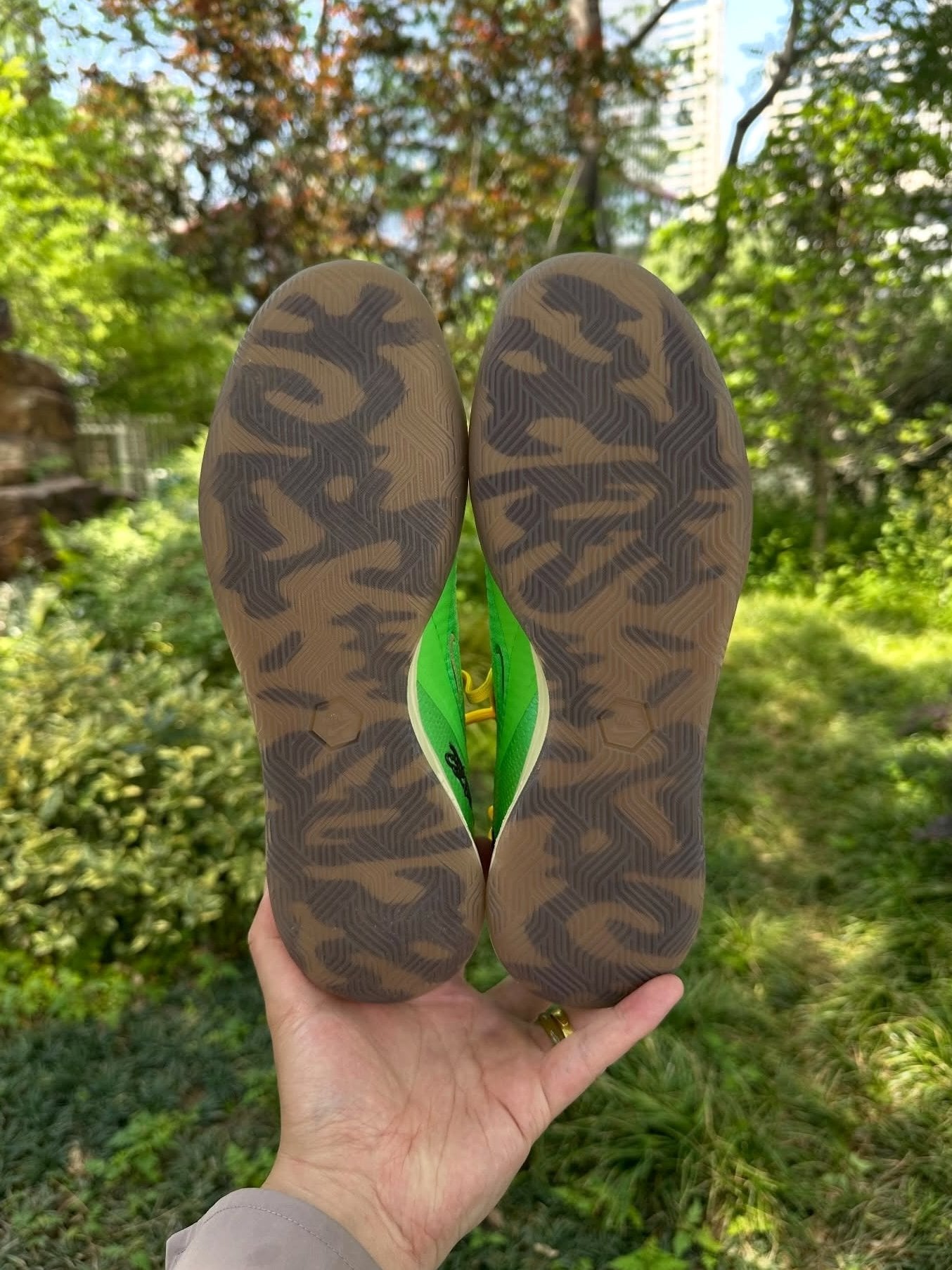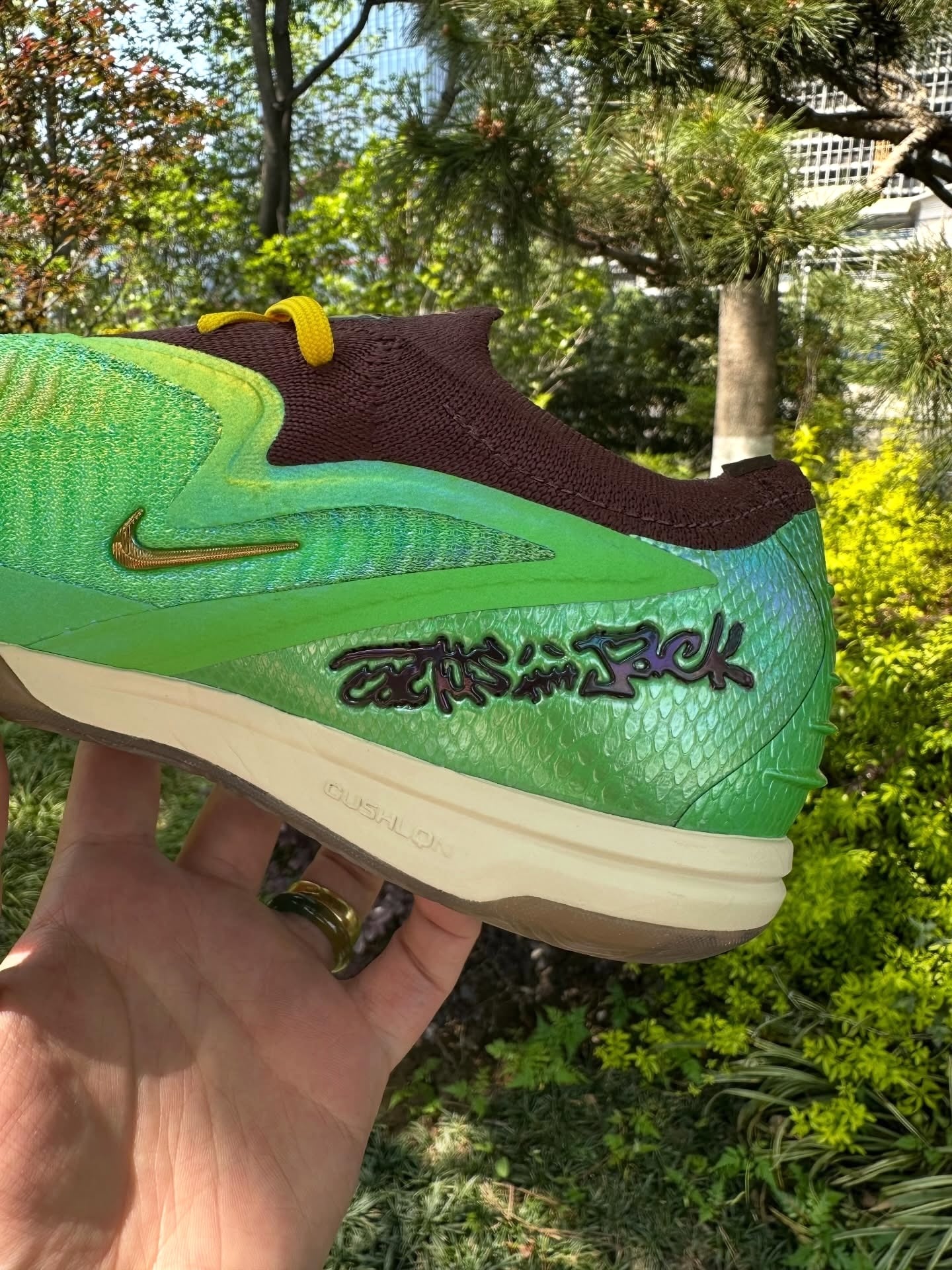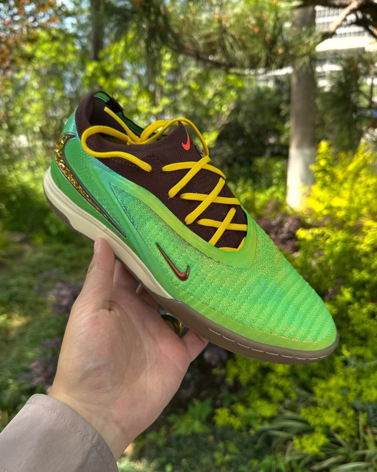 UPDATE 4/27/26: Travis Scott’s upcoming soccer shoe collaboration with Nike has resurfaced this month, after first appearing back in December. The Phantom 6 Indoor boot is seen below in new in-hand images, showing off a bright acid green upper with brown and yellow accents. Plenty of Cactus Jack branding is added throughout the shoe, which is expected to release this Summer for the World Cup.