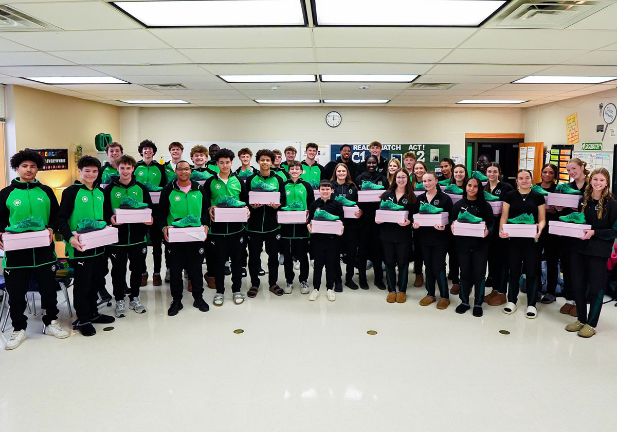 The PUMA Hali 1 “Oshkosh North” PE features Haliburton’s high school jersey number 14 on the tongue, a number the school retired in 2022. The sneaker arrives in a multi-shaded green colorway to match the Spartans’ uniforms, complete with a dark-to-light gradient along the midsole. Haliburton personally delivered the pairs to Oshkosh North’s boys’ and girls’ basketball teams, and it appears they’re already lacing ’em up in games.