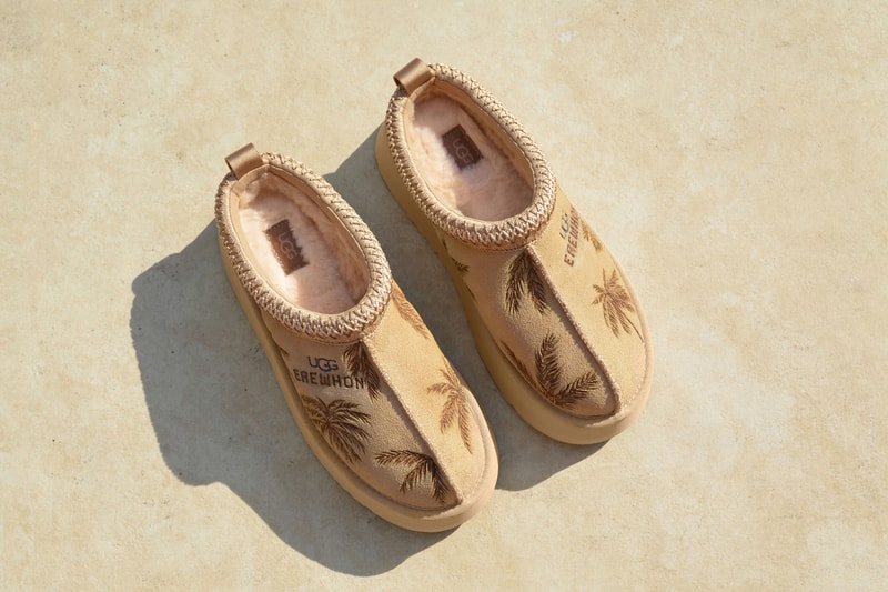 With its cult craze smoothies, Erewhon has become Los Angeles’ trendiest gourmet grocery store. Recently, the brand has collaborated with The Kid Laroi, the sunscreen brand Vacation and Chef Nobu Matsuhisa.For its latest partnership, Erewhon has joined forces with UGG to reimagine its flagship Tazz mule. The suede slip-on shoe arrives in its most popular shade, “Mustard Seed,” but now comes with a tattoo-style palm tree design.The brown palm tree print was created by the celebrity tattoo artist JonBoy, paying homage to Los Angeles. Along with the limited-edition mule, Erewhon has debuted a new cold-press drink called The Tazz Tonic, made out of banana, peanut butter, maple syrup, tahini, lucuma and collagen.Only 10 pairs of the limited-edition Tazz mules will be released via a giveaway on the UGG website. Those interested can enter before 9 a.m. PT on Wednesday, July 10. The standard Tazz mule in “Mustard See” is also being restocked on the UGG website on July 10.Click here to view full gallery at Hypebeast