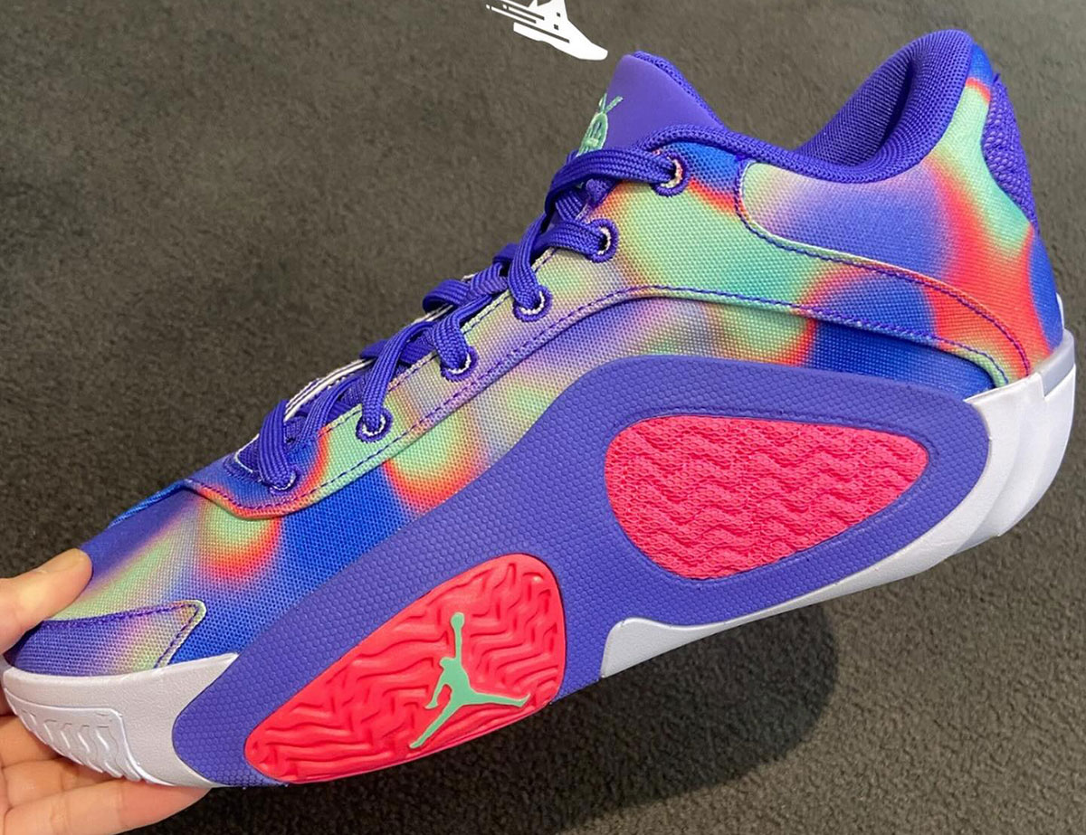 The Jordan Spizike Low and Stadium 90 apply the concept in rather reserved applications, painting rainbow gradients onto otherwise white-dominant outfits. The Jordan Tatum 2, on the other hand, fully embraces the vibrant motif, painting heel to toe with that deep purple and applying in a heatmap-like arrangement. Regardless of the visual differences, the three shoes tie together with embroidered details, alternating between their typical Jumpman/Nike Air branding and embroidered Hanzi type.