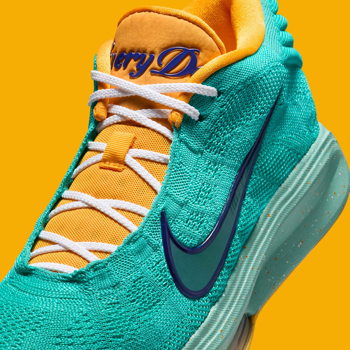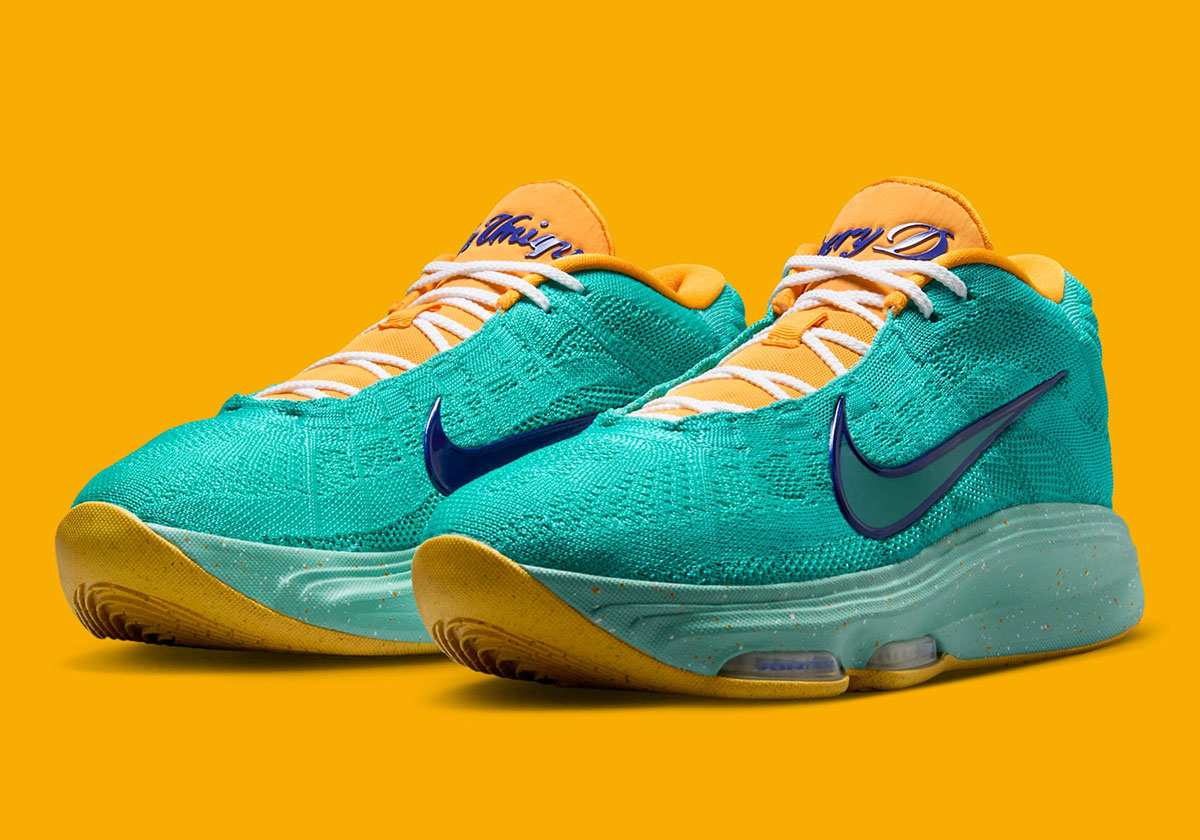 Revealed via official Nike images is this brand new colorway featuring a punchy mix of Dusty Cactus, Laser Orange, and a few complementary hits of Concord and Green Frost. It’s almost meant to match San Antonio’s tertiary color theme, while Wemby’s slogan “Be Unique Every Day” is billboarded on the tongues of both shoes.