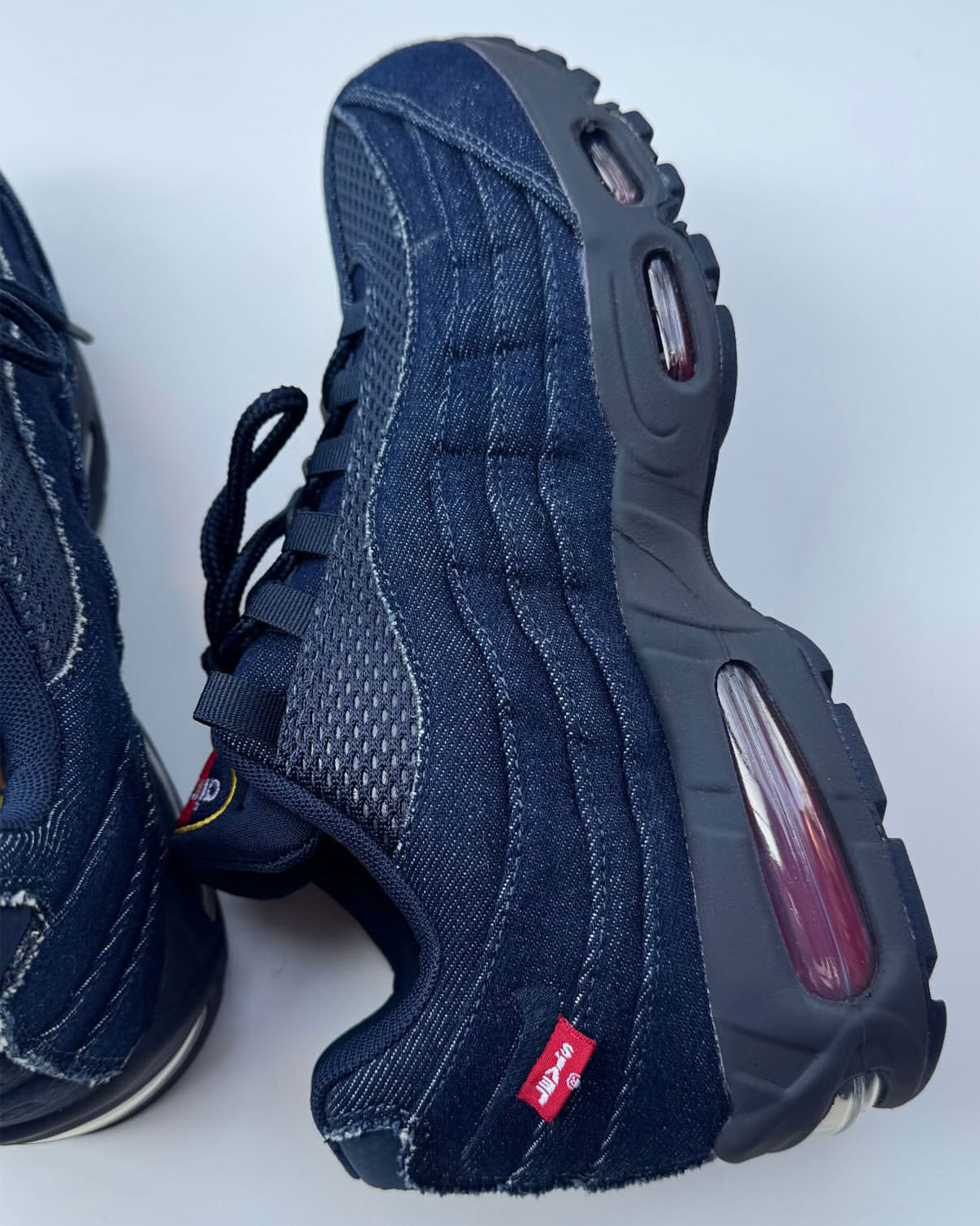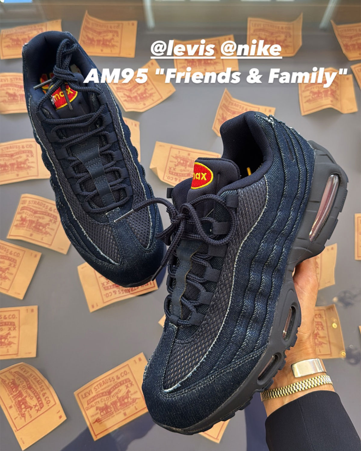 To state the obvious, this particular Levi’s Air Max 95 is for friends & family only and will not see a public release. Levi’s and Nike have three colorways on tap for July 11th (black, blue, and white), all of which retail for $205.