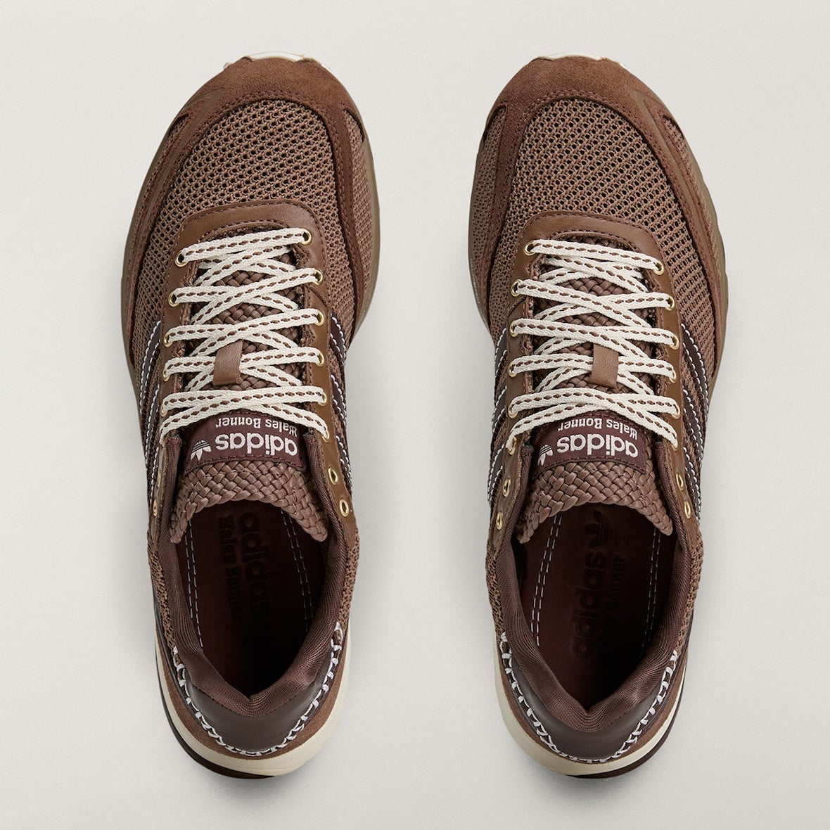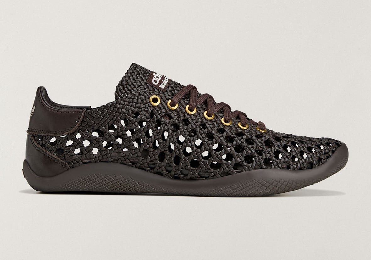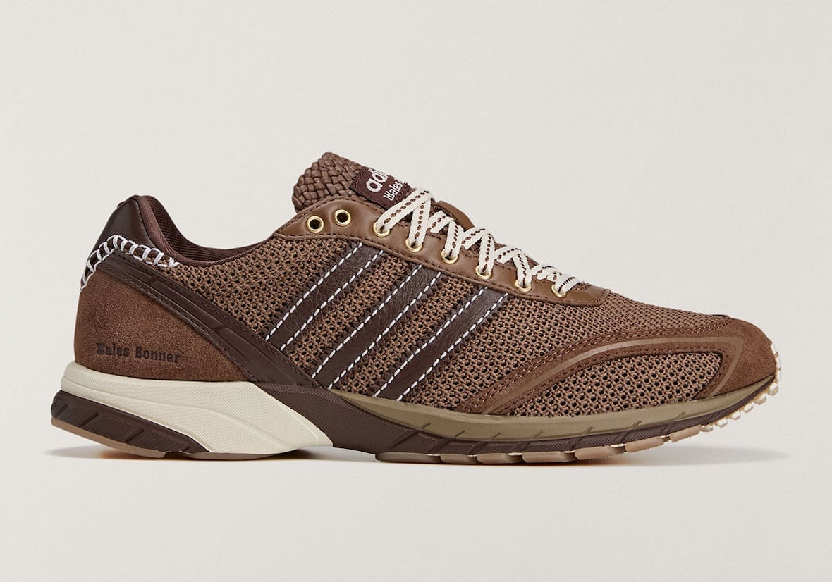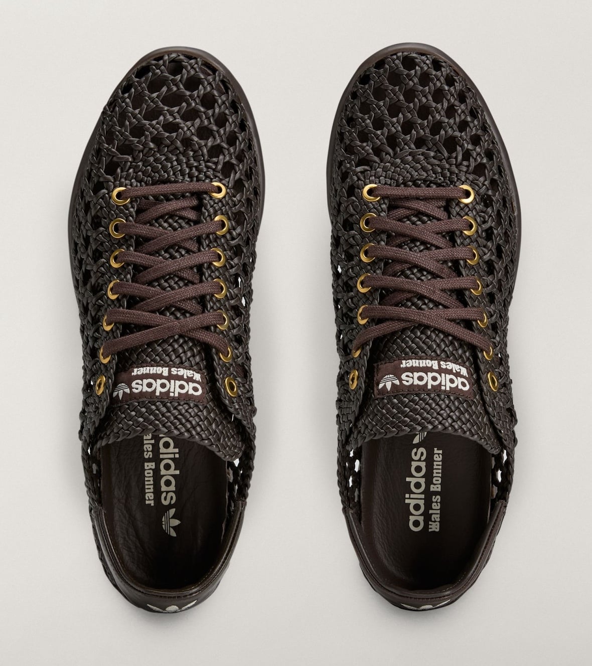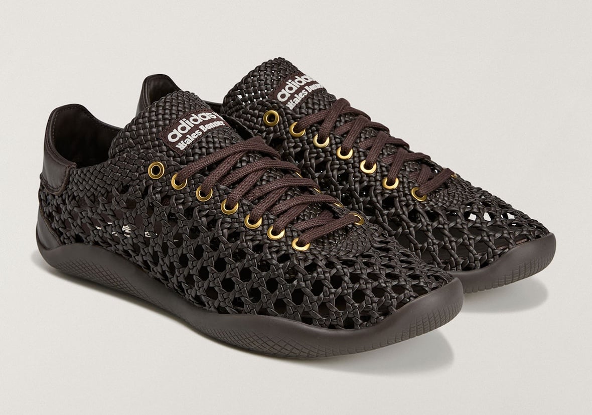 UPDATE 4/15/26: Two more casual sneaker styles have emerged for the new Wales Bonner x adidas collection, now slated to drop this week on April 17th, 2026. The Adizero Adios OG returns in a smooth brown color scheme with woven leather tongues, and the Karintha adds a third option with a unique ‘basketry’ woven leather upper.