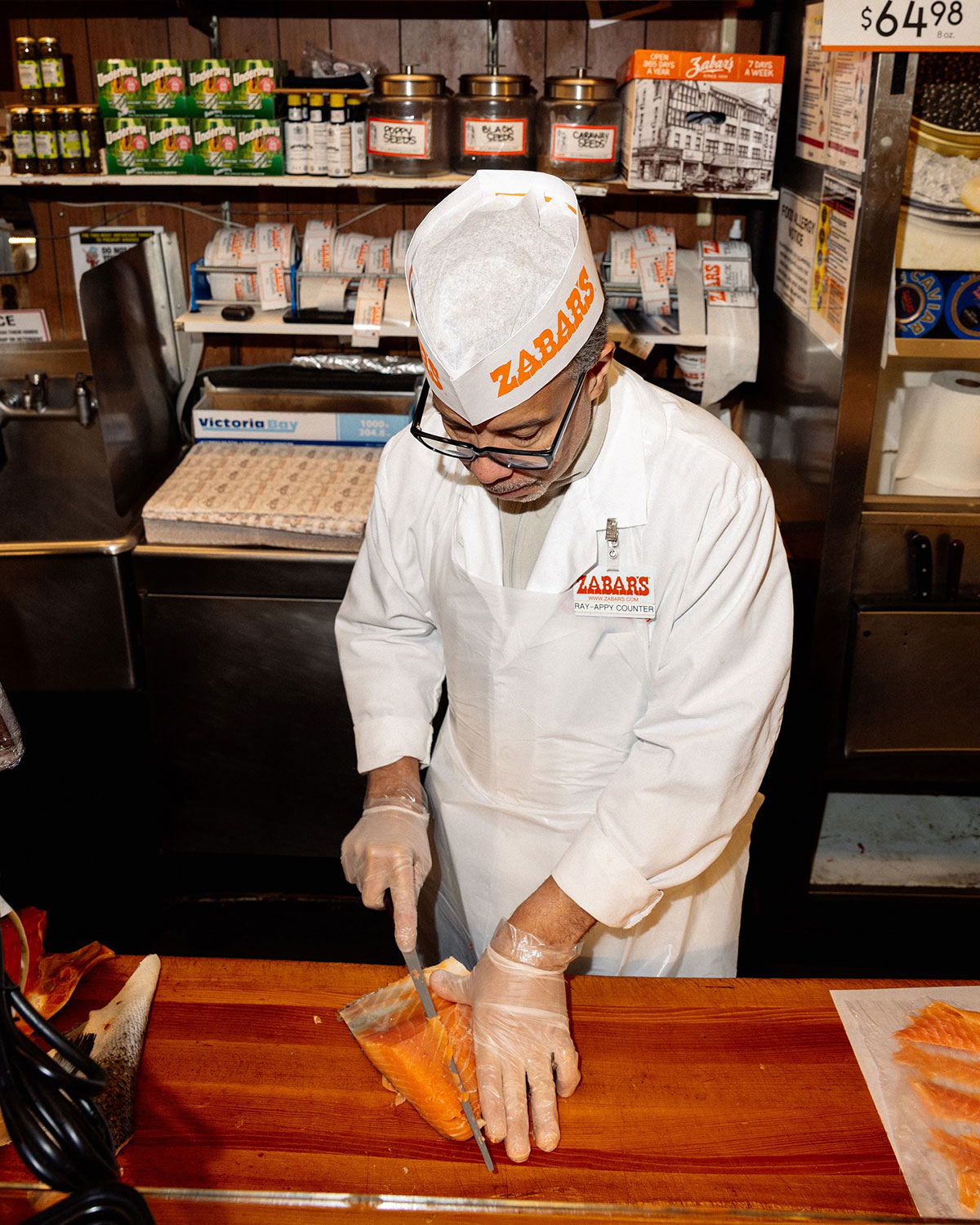 As for the West NYC x adidas Rod Laver, it’s the creative campaign that sets the sneaker apart. The retailer checks in with a predominantly white colorway featuring compelling pops of orange, matching the colors of Zabar’s located just eight just blocks up Broadway. To the uninitiated; Zabar’s is best known for their nova smoked salmon and uses the fish’s bright pink/orange color in their branding. West NYC brought their Rod Laver up to Zabar’s for the campaign, snapping pics of employees styling the sneaker with their work uniforms.