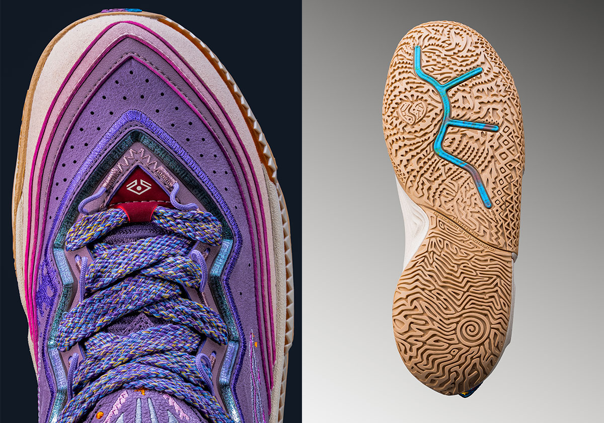 In speaking about his new silhouette, Irving himself states that “no one’s shoes look like this,” and it’s hard to disagree. In broad strokes, you can argue that the maximalist, techy look is comparable to other Chinese brands (PEAK, Rigorer, 361 Degrees), but as always, Kyrie and the ANTA team jam-pack this shoe with storytelling details. Capitalizing on the “Artist on Court” theme, the toe-box pulls from the textured brushstrokes of Fauvism, while the ANTA logo is spun into jagged ridges through the eye-stays and heel counter.