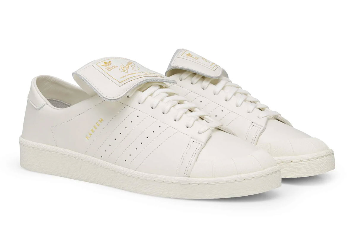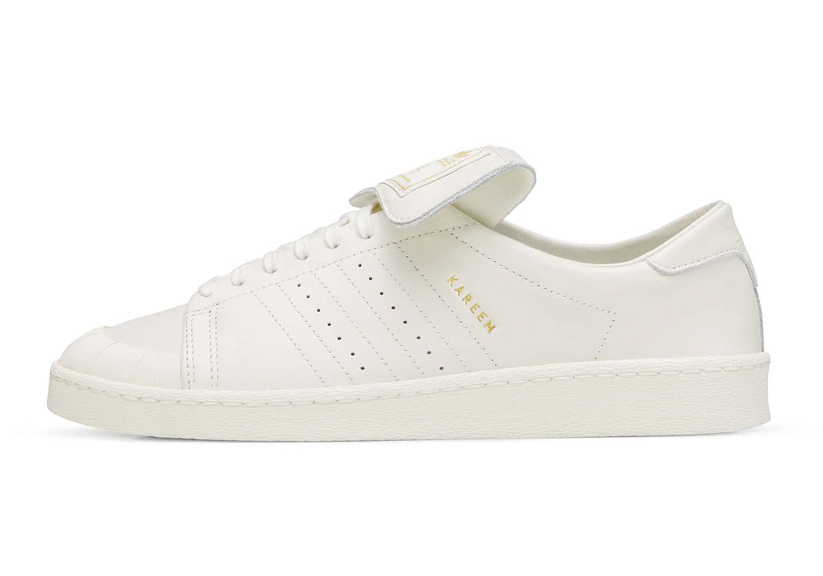 Here we have a fresh all-white version of the Willy Chavarria x adidas Jabbar Lo (the standard silhouette, not the controversial Jabbar Dress Lo). A small, Superstar-inspired rubber shell toe cap and long tongue featuring gold co-branding remain hallmarks, but the Three Stripe overlays are removed and replaced by stitching.