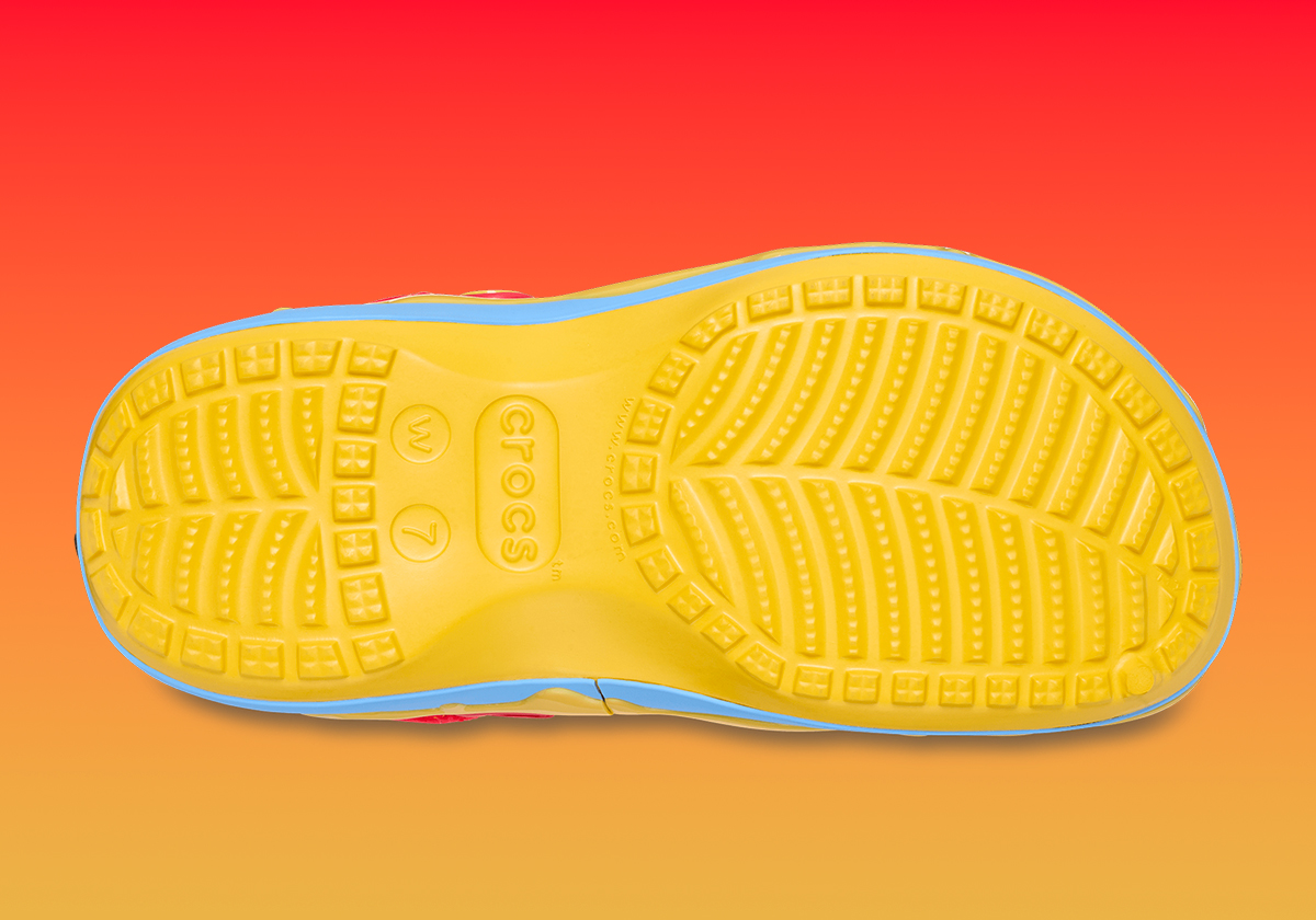 As you’d expect, the Winnie The Pooh Crocs take after the bear with a mostly yellow design. Winnie silhouettes can be spotted on the top portion, while underfoot, the extra platform space features dripping yellow honey (or “hunny”). Winnie’s iconic honey pot continues to play a role through “hunny” text over the heel, while a blue background alludes to the clear skies often seen in Disney’s animations. A red fabric strap featuring stitched “Pooh” text ties in with Winnie’s shirt, and as always, the Jibbitz pull everything together. The most notable of the bunch is a plush fabric charm of Winnie’s face; a direct tribute to one of the most iconic stuffed bear toys there is.
