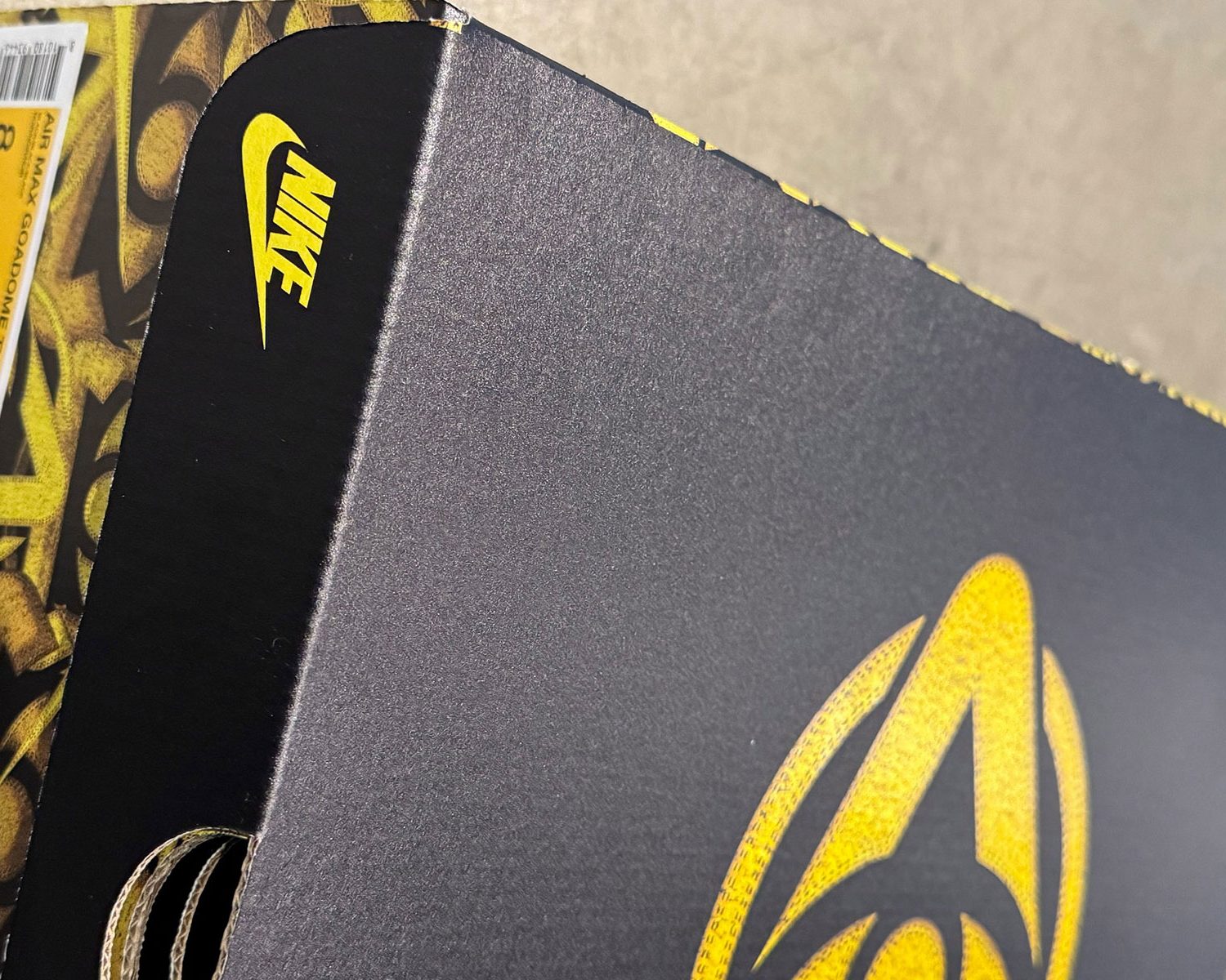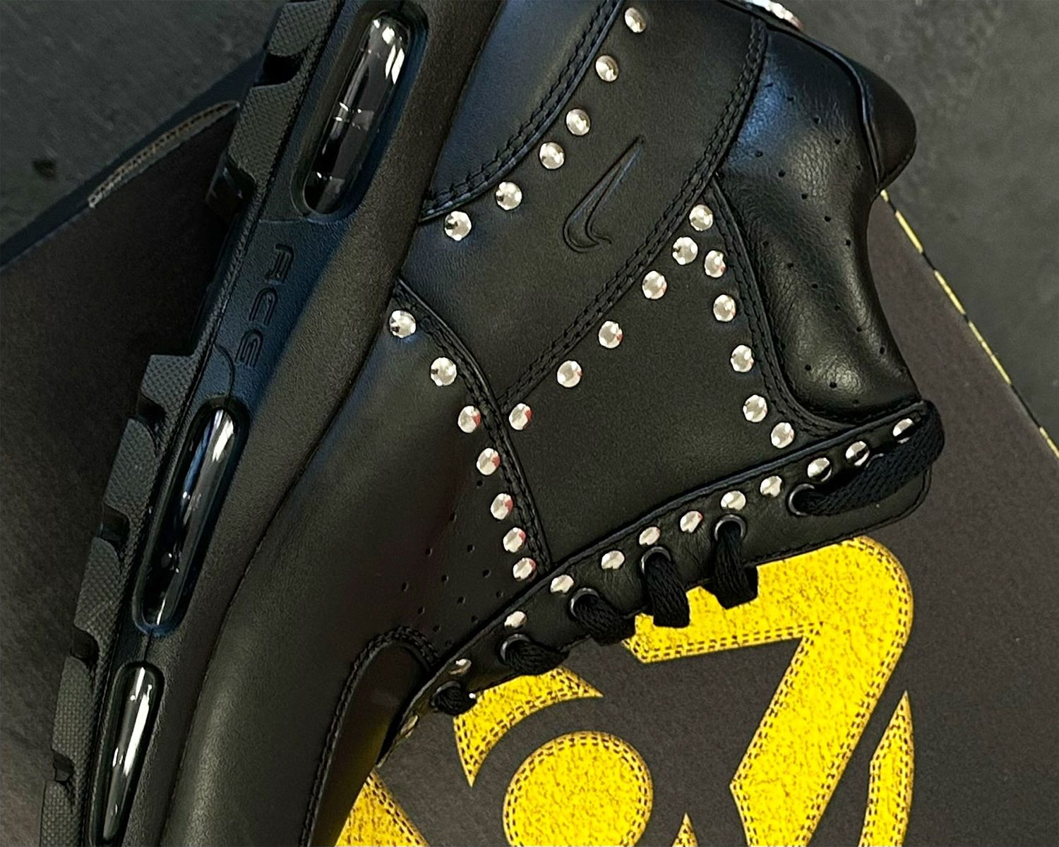 For their first joint effort, Nike and Yeat take on the Air Max Goadome boot, which is experiencing a bit of a resurgence thanks to fresh GR colorways and even some mold-breaking pony hair styles (which are still TBD). Yeat’s pair features a black leather foundation and metal studs along the borders of the panels, particularly around the quarter and eyelets.