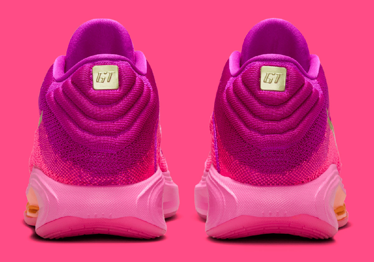 As for the visuals at hand, fuschia sunset tones are the true focus. Two gradients appear; one bone on the midsole that brings orange around the Air units to light pink towards the heel, and one on the upper that carries from the titular shade to deeper “Hyper Grape” up top. The wavy arrangement of the brings an Air Max 95 sort of feel to these basketball shoes, bridging classic Swoosh designs with their latest & greatest tech.