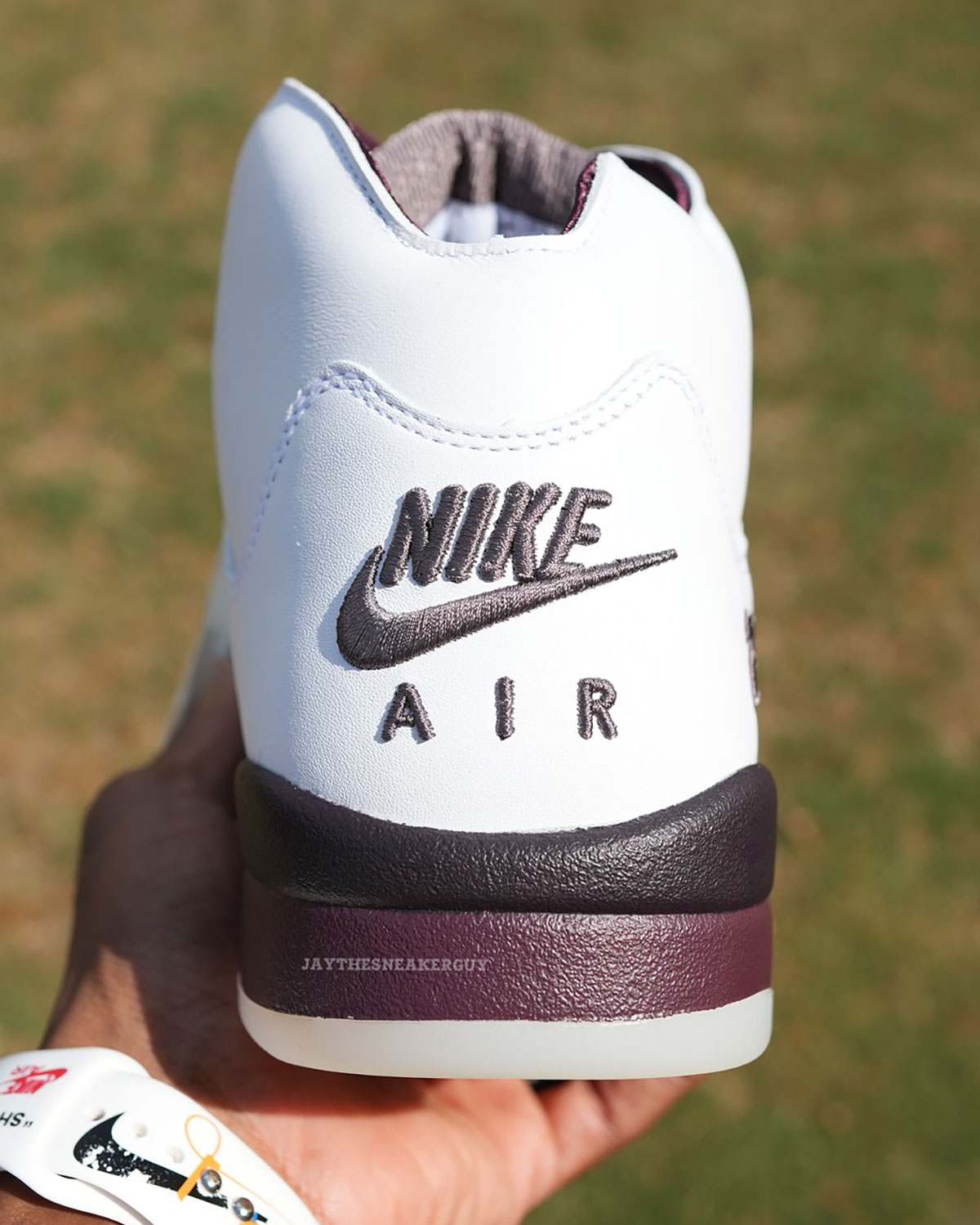 This marks the third A Ma Maniére x Jordan 5 thus far, with James Whitner’s imprint previously releasing a “Dusk” and “Dawn” pack in 2023. Stitched “Nike Air” and “23” lettering appears on the heel and lateral side, respectively, and the quarter netting is subtly altered with AMM’s signature monogram. A pinched collar and quilted interior lining usher in qualities from recent Jordan 4 and Jordan 3 collabs, while original “Nike” text lands on the outsole next to an AMM logo.