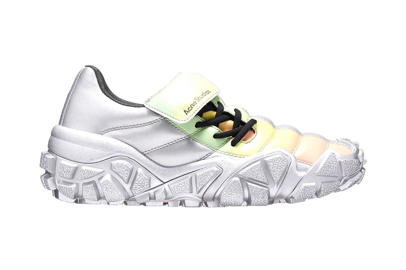 Acne Studios has never been afraid of experimentation. From its futuristic and forest-inspired runway shows to the clean-cut tailoring seen across its more street-focused designs featured in HEAT’s mystery boxes, Jonny Johansson’s Stockholm-based brand is always willing to push its ideas into new realms, and this has been encapsulated perfectly in the label's new Bolzter Football Sneakers.When first meeting the eye, Acne Studios' latest footwear silhouette shows slight similarities to Nike's OG Total 90 football boot. And while the Swoosh's classic interpretation of the boot hasn't been seen on the pitch for over a decade, Acne now appears to be revitalizing the design slightly, with distinctive two-tone stripe detailing being applied to the right side of the sneaker's upper. Additionally, the silver sneakers are crafted with a metallic leather upper, while a quilted finish is used to complement the side lace-up fastening, folded tongue, round toe, logo branding, and treaded rubber outsole. Meanwhile, the stand-out feature of the design comes in the form of the two-tone detailing, which utilizes bright tones of green and orange.You can take a closer look at the new footwear release from Acne Studios above and it is available to shop via select retailers now.In other footwear news, take a look at the latest iteration of New Balance's Warped Runner.Click here to view full gallery at Hypebeast