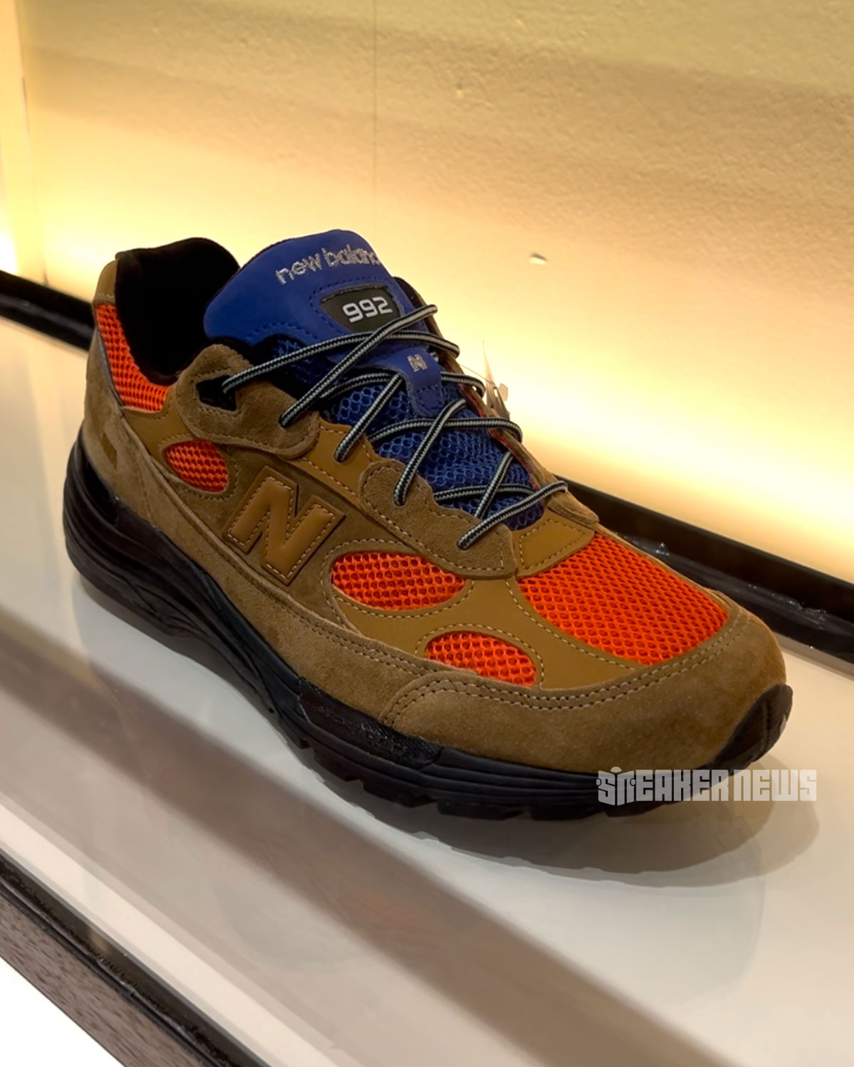 On the third and final day, the Queens-bred multi-hyphenate provided a first look at his next project with the Boston sportswear label, the New Balance 992. Encased in a glass-protected display, this 992 is a clear-cut nod to his New York sports fandom as it features a rich royal blue tongue and bright orange mesh. The overlays in suede are covered in a brown suede, with black covering the entirety of the outsole and the interior.