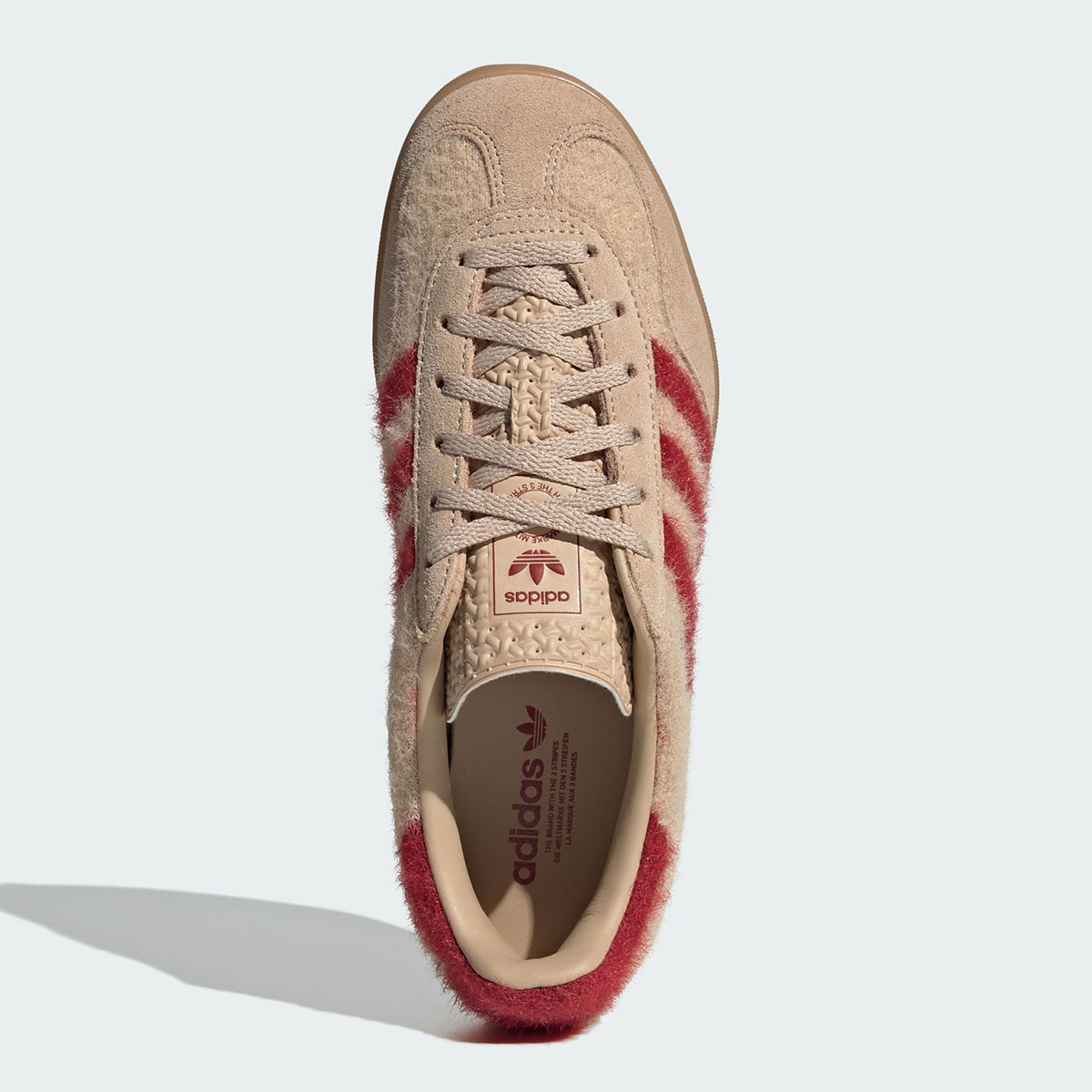 These furry adidas Gazelle Indoor builds drop September 2025 in women’s sizing, retailing for $120.