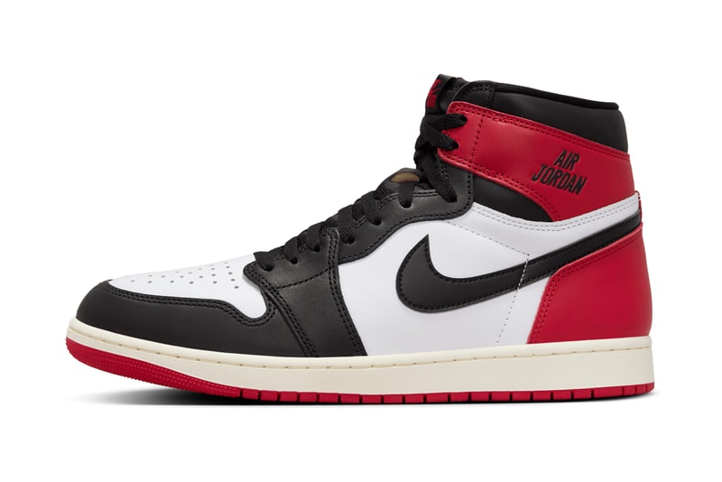Update: After catching an initial glimpse at the sneaker earlier this week, we now have a closer look at what to expect from the Air Jordan 1 “Black Toe Reimagined.” Its black, white and red leather build has been highlighted once again as the sneaker remains anticipated for an October 18 release via Nike and select retailers at a price of $180 USD.