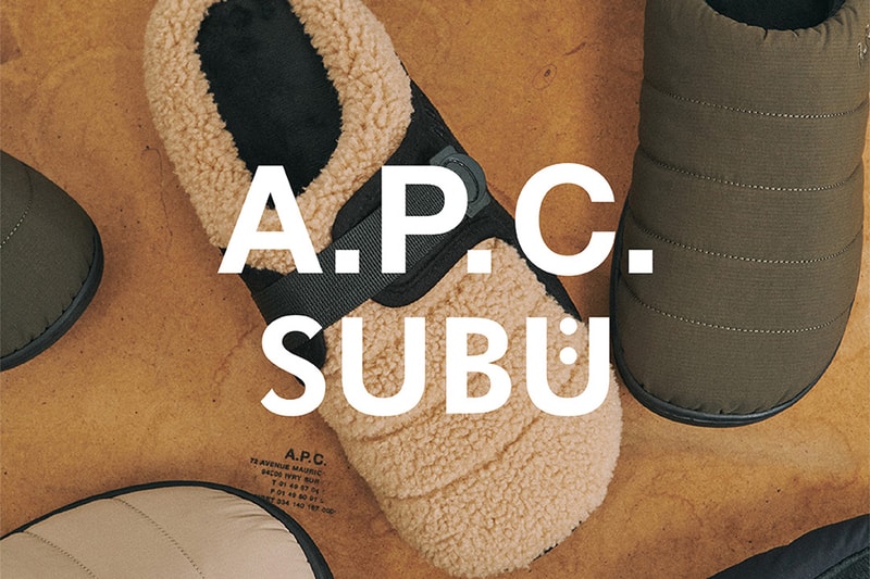 Just in time for the winter festivities, A.P.C and SUBU have unveiled a collaborative collection of "winter sandals" including five unique styles imbued with A.P.C's pared-back and elevated materiality.The Japanese footwear brand's signature quilted clogs come in black, beige and khaki, a concise trio of elegant colorways each embroidered with a tonal A.P.C. and SUBU word marks on the lateral collars. The Belt Sandals with faux wool uppers boast a plush sherpa-like texture, offered in black and beige. The cozy stye also features a hefty black velcro strap to ensure a snug fit. Finally, all five variants feature a black lining and sleek black soles accented with welt stitching.The A.P.C. x SUBU Winter Sandals are available now at the A.P.C. web store.Click here to view full gallery at Hypebeast