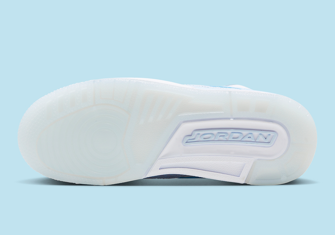 Underfoot, the color story stays the same, giving the Jordan Legacy 312 a look sure to be celebrated by its target audience: kids. Midsoles indulge in a two-tone arrangement that sees components just above the visible Air unit dress up in a sky-reminiscent blue. Outsoles designed by Tinker Hatfield in 1988 round out the light color scheme with an icy, semi-translucent makeover.