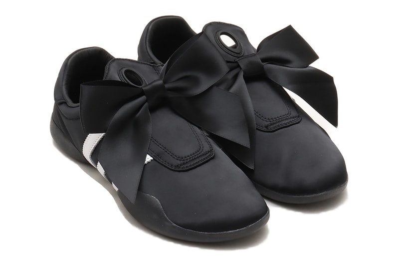 Adding to the fun, atmos Pink -- the Japanese retailer's women-oriented brand -- has just revealed its own take on the Taekwondo Mei. The shoe begins with a satin upper in black that matches the laceless tongue, heel counter, and sole unit. White enters the mix at the leather stripes found at each side, as well as the adidas logo situated at the fastening button that hosts the pair's special feature -- a removable bow.