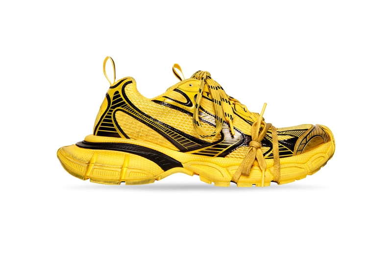 First up, the Demna-led label has released the 3XL Sneaker, which offers a highly exaggerated take on a typical running shoe with an enlarged sole and an ultra-wide shape. Employing technical mesh in a number of scales, the shoe boasts an unusual texture that contributes to its illusory finish. Beneath thick, elasticized laces, the sneaker's edges and surfaces appear to contract and expand in organic shapes. The inventive shoe comes in a number of colorways, including black/white, red/white/blue, yellow, grey and multitone.