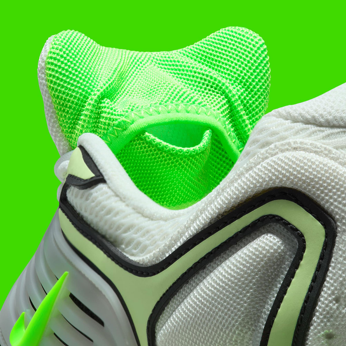 Just to get you up to speed, two previous editions we’ve covered in the month and change leading up to this pair no doubt paved the way for it, utilizing candy accent shades on the sole and scattered additional hits while leaving the upper in more traditional coloring. For this colorway specifically, the only exception is a “Barely Volt” underlay panel that weaves across the medial and lateral sides, splitting the difference between the slime “Green Strike” and off-white shades that handle the rest of the shoe.