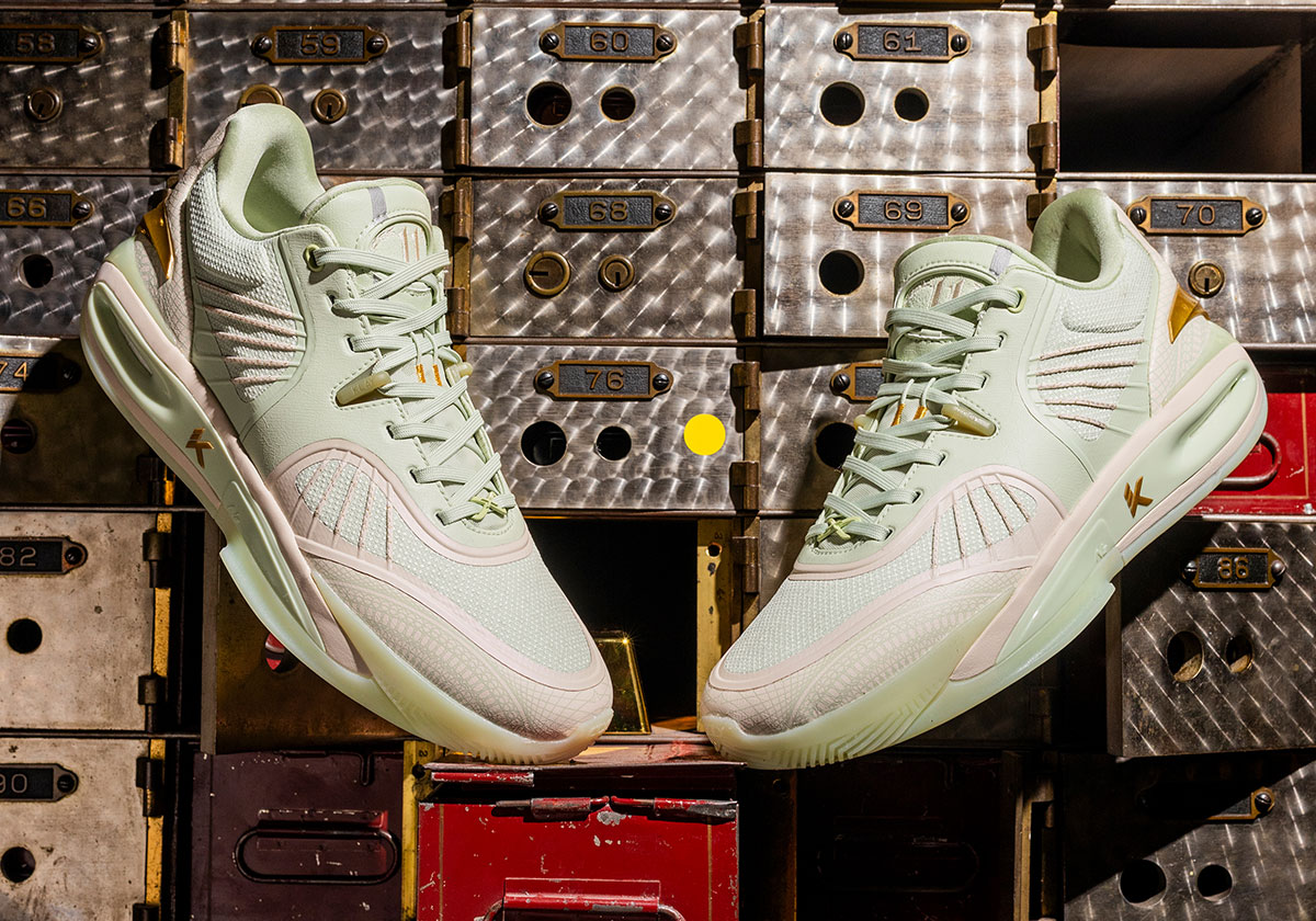 ANTA stepped in, delivering his KTX signature shoe in two colorways that only scratch the surface of his greatness at the perimeter. The “Moneyball” colorway in mint green nods to the final shot he hit during the 2016 Three-Point Contest to beat out Steph Curry for the crown. Intricate details inspired by US currency are seen throughout the upper, including holographic touches and a guilloche pattern.