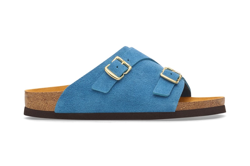 Today, the brand's vintage-inspired anniversary capsule melds components of the original design with the label's contemporary style codes across four colorways: "Dark Red," "Dark Green," "Light Blue" and "Light Green." The silhouette features age-old buckles and soles that replicate those on the 1964 model, while premium leather and soft suede uppers give the silhouette a modern, luxe lift. The anatomically shaped cork-latex footbed, meanwhile, champions the brand's centuries-spanning legacy in shoemaking.