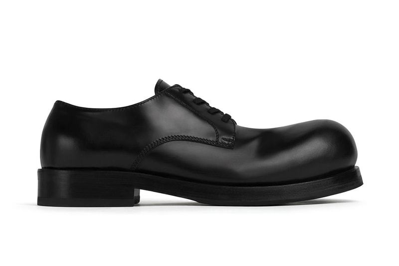 Building on the trend of exaggerated footwear silhouettes, Bottega Veneta has now introduced its take on classic clown shoes. Dubbed the "Helium Lace-Up Shoe," the new model from the Italian luxury fashion house based in Milan is inspired by the costuming of the divisive comedic entertainers.Bottega Veneta's Helium Lace-Up Shoe are brushed leather derby-style shoes with a bulbous toe shape. Made in Italy, the footwear style features premium black calfskin uppers accented by matching stitching and laces. Additional detailing comes in the form of calfskin linings and "BOTTEGA VENETA" debossed leather insoles. Elevating the shoe are biodegradable leather sole units with 1.6-inch heels.Priced at $1,400 USD, the Helium Lace-Up Shoe is available now in "Black" on Bottega Veneta's website, locations, and at select retailers.In case you missed it, take a look at these custom Timberland x MSCHF boots. Click here to view full gallery at Hypebeast