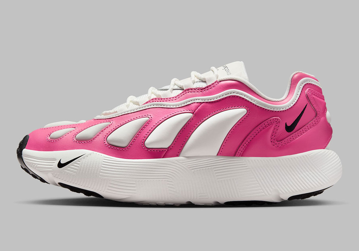 True to the initial “leak” and their design language overall, three colorways are on tap for this make-up, spread across all-white, all-black and equally expected pink/white. While CDG’s understated aesthetic touch always inherently shifts focus onto the hardware, here the composition is all the more eye-catching. Spinning off the windowed, retro aesthetics of the Air Max 96 proper, with a far chunkier upper and a cloud-like sole unit underfoot, carrying dense geometric patterns as it delivers an extra cushioned ride.