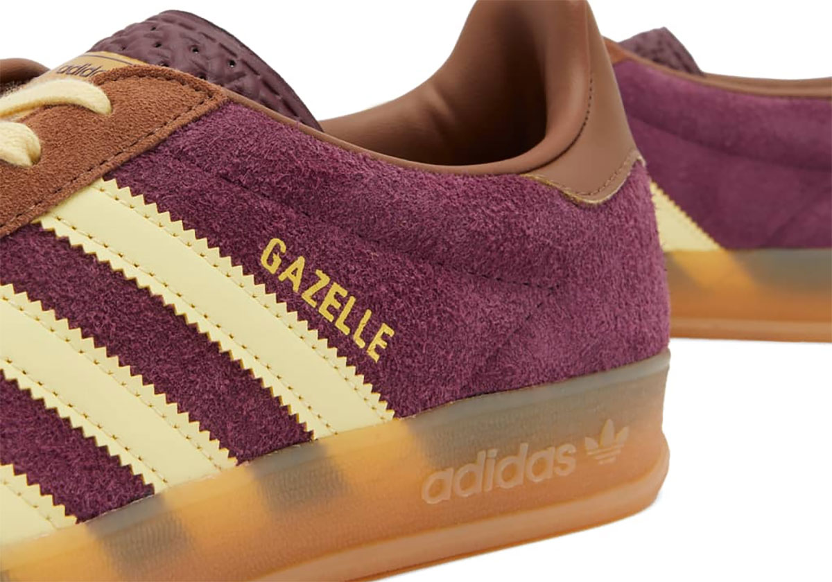The adidas Gazelle Indoor “Maroon/Almost Yellow/Preloved Brown” ($120) is already available at select retailers overseas, so a broader adidas.com release within the next few months seems likely. See official retailer images courtesy of END Clothing below and tap our Sneaker Release Dates page to scroll through other upcoming pairs.