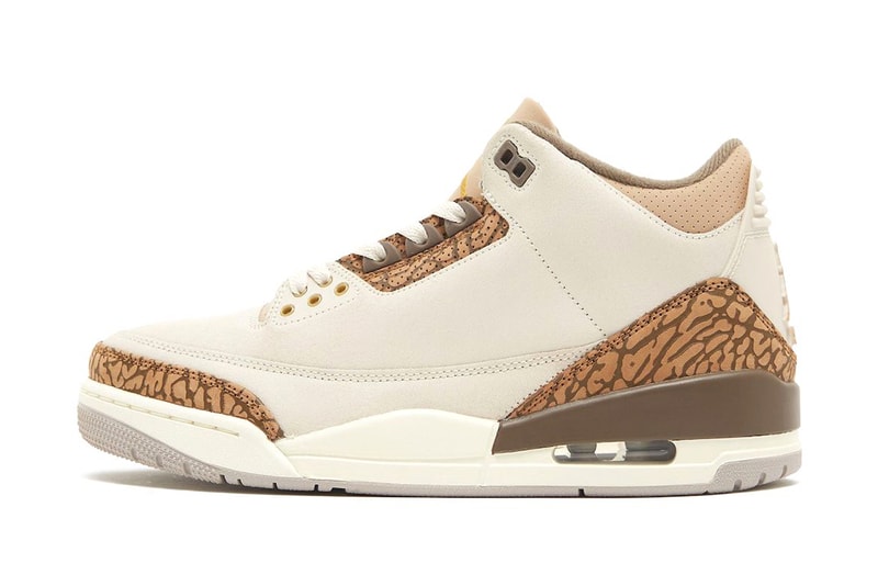 Update: Just over a month since its last appearance, the Air Jordan 3 "Palomino" continues to build up hype for its August 19 launch with close-up shots courtesy of JD Sports. Pairs are priced at $200 USD and hit shelves just weeks before the Air Jordan 1 High "Palomino" does. Stay tuned for official assets and release information to come from the Swoosh soon.Update: Following a first glance at the sneaker, YankeeKicks has shared its on-foot shots of the Air Jordan 3 "Palomino." The brown makeover is said to be landing on shelves August 19 at a price of $200 USD via Nike and select Jordan Brand retailers. For a deeper dive into its details, take look at our initial coverage of the colorway below. View this post on Instagram A post shared by YankeeKicks ™️ (@yankeekicks)Original Story: Set to arrive as part of Jordan Brand's Summer 2023 collection, we now have a first look at the Air Jordan 3 "Palomino." The upcoming take on the AJ3 is centered around a striking mix of "Light Orewood Brown/Metallic Gold/Light British Tan/Palomino."The Air Jordan 3 "Palomino" features beige-tone suede uppers accented by brown elephant overlays at the eyestay, toe, and heel regions. Addition detailing comes in the form of tan perforated leather collars and tongues, matching eyelets, and laces.While branding includes metallic gold Jumpman logos at the tongue, heel counters, and printed insoles. Elevating the shoe are Air-assisted brown/beige midsoles and gray rubber outsoles. The Air Jordan 3 "Palomino" is also set to arrive with special packaging with additional laces.Priced at $200 USD, take a first look at the Air Jordan 3 "Palomino" now expected to release August 19. View this post on Instagram A post shared by Fkz sneakers (@fkzsnkrs) View this post on Instagram A post shared by Fkz sneakers (@fkzsnkrs)For more footwear news, the Nike Air Foamposite One "Dream A World" receives a release date. Click here to view full gallery at Hypebeast
