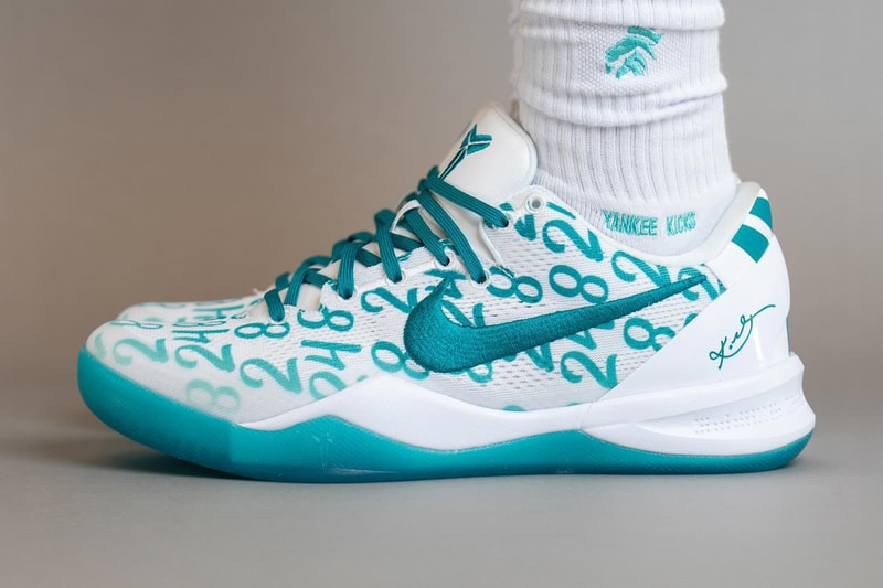 Update: Looking ahead to 2024, there's plenty in store for Nike Basketball's Kobe line as various Protro silhouettes gear up for a slew of releases throughout the year. One pair that has been looked at for months now is the Kobe 8 Protro "Radiant Emerald." Complemented by a "Court Purple" flavor of a similar arrangement, the sneaker is set to launch on February 8 via Nike SNKRS at a price of $190 USD.Original Story: Nike Basketball officially rebooted the Nike Kobe partnership this year on Kobe Day (August 24). The day before, on the late Kobe Bryant's birthday, the Nike Kobe 8 Protro took on an all-white "Halo" colorway before four restocks went down on Kobe Day with classics such as the Nike Kobe 6 Protro “Grinch” making a return. Now, as we look ahead to 2024, a key release from Nike Basketball sees the Kobe 8 Protro in an all-new "Radiant Emerald" colorway.With this unique design, white outfits a majority of the shoe's base, including the lining and midsole, while its signature greenish-blue hue enlivens its presentation. "Radiant Emerald" hits the Nike Kobe branding at the tongue, the embroidered Swooshes, the signature detail at the heel and the semi-translucent outsole. In addition to this, the numbers "8" and "24" are repeated throughout the upper in the blue shade as a nod to both of the jersey numbers Bryant wore during his NBA career.At the time of writing, the release details surrounding the Nike Kobe 8 Protro "Radiant Emerald" remain unconfirmed as it's currently expected to launch via Nike SNKRS and select retailers at a new starting price of $190 USD on February 8. View this post on Instagram A post shared by carterwang卡特王 (@carterwangchina)Stay tuned for updates regarding this pair and for more of the latest news from the sneaker space, be sure to check out Nike's Día de Muertos-themed collection for 2023 -- starring the Air Jordan 1 Zoom CMFT 2, Dunk Low, Air Max 1 and Blazer Mid.Click here to view full gallery at Hypebeast