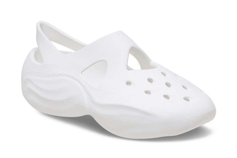 Teased previously within Zhang's "SCAR:city" collection, he noted that the slip-on draws inspiration from aerodynamic sports cars with its streamlined design also nodding to Crocs' archival Swiftwater Sandal style. Crocs' signature holes appear at the toe while a strap-like structure wraps around the midfoot and heel. Its sculpted sole unit elevates the wearer with its lofty stature that is absent of branding elements throughout its all-white presentation.