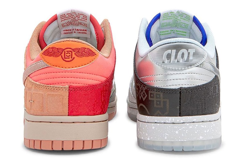 The rumor mill within the sneaker community is that CLOT's almost two-decades-long partnership with Nike coming to a close. Edison Chen and Kevin Poon's Hong Kong-based streetwear imprint will reportedly embark on a new journey with the Three Stripes, but before that alliance becomes official, it will be taking on a final project with the Swoosh: a CLOT x Nike Dunk Low "What The" collaboration.As you can likely infer from its nickname, this forthcoming installment will be graced with a myriad of features from past CLOT x Nike team-ups. A rear view angle of the pair has been previewed by Chen thus far, and you can already point out specific elements such as the tile panels from its "Terracotta" Air Jordan 13 Low project, an assortment of "Silk Royale" patches and embroidered details from its Air Force 1 and Air Max 1 offerings and the same CLOT font branding from its Dunk Low initiative with fragment design on the right shoe's heel.If this is the final project that we see this duo release to the masses, they're certainly going out with a banger. Sit tight as we receive further updates on their official release.For other news, the Born x Raised x Nike SB Dunk Low release has been delayed in light of Spanto's passing. Click here to view full gallery at Hypebeast