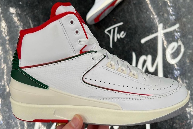 In case Jordan Brand hasn't served you enough Air Jordan 2 looks to choose from, yet another has surfaced. Remixing the retro sneaker with "Fire Red" and "Fir Green" accents, the silhouette continues its conquest within the sneakerverse.