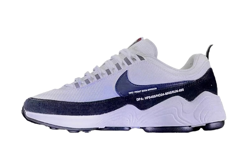 Name: fragment design x Nike Zoom Spiridon "White"Colorway: White/Blue Void/BlackSKU: HF5455-100MSRP: $170 USDRelease Date: Holiday 2024Where to Buy: NikeHiroshi Fujiwara has been a close collaborator of Nike's for decades now, having graced many different sneakers himself and via his label fragment design. While it's been some time since the two released a sneaker together, that is due to change by the end of the year as a fragment design x Nike Zoom Spiridon project is on the way.We actually got a first look at what this collaboration would entail back in October of last year as a navy colorway with "FRGMT" detailing popped up. Now, a pair in white has been unveiled with unique co-branding throughout. For starters, the upper's lateral Swoosh sees "NIKE / FRGMT ZOOM SPIRIDON" text present just above another text line with info indicating the style code and release period. As for the outsole, it sees "FRGMT" debossed at the heel and "FRGMT" notes with the brand's logo scattered across the translucent level. Co-branding then continues at the tongue and sockliner, completing this initial preview of the pair.At the time of writing, neither fragment design nor Nike have shared any details regarding their team-up featuring the Zoom Spiridon. Stay tuned for updates, including official visuals for the kicks, as we currently expect the project to drop by the end of the year via Nike SNKRS and select retailers at a price of $170 USD. View this post on Instagram A post shared by Kicksa luo luo (@kicksdong)Click here to view full gallery at Hypebeast