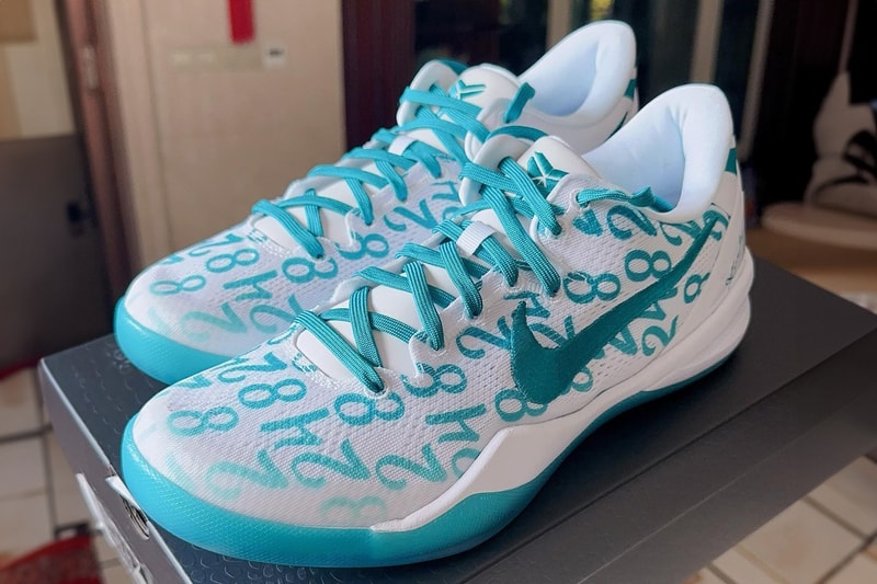 Nike Basketball officially rebooted the Nike Kobe partnership this year on Kobe Day (August 24). The day before, on the late Kobe Bryant's birthday, the Nike Kobe 8 Protro took on an all-white "Halo" colorway before four restocks went down on Kobe Day with classics such as the Nike Kobe 6 Protro “Grinch” making a return. Now, as we look ahead to 2024, a key release from Nike Basketball sees the Kobe 8 Protro in an all-new "Radiant Emerald" colorway.With this unique design, white outfits a majority of the shoe's base, including the lining and midsole, while its signature greenish-blue hue enlivens its presentation. "Radiant Emerald" hits the Nike Kobe branding at the tongue, the embroidered Swooshes, the signature detail at the heel and the semi-translucent outsole. In addition to this, the numbers "8" and "24" are repeated throughout the upper in the blue shade as a nod to both of the jersey numbers Bryant wore during his NBA career.At the time of writing, the release details surrounding the Nike Kobe 8 Protro "Radiant Emerald" remain unconfirmed as it's currently expected to launch via Nike SNKRS and select retailers at a new starting price of $190 USD on February 8. View this post on Instagram A post shared by carterwang卡特王 (@carterwangchina)Stay tuned for updates regarding this pair and for more of the latest news from the sneaker space, be sure to check out Nike's Día de Muertos-themed collection for 2023 -- starring the Air Jordan 1 Zoom CMFT 2, Dunk Low, Air Max 1 and Blazer Mid.Click here to view full gallery at Hypebeast