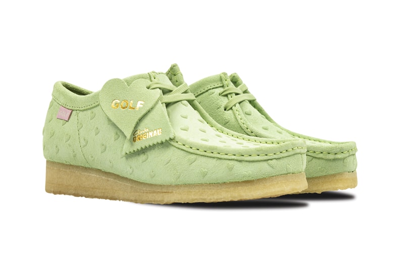Almost six months after first teasing a collaboration with Clarks, Tyler, the Creator’s GOLF WANG has officially confirmed the shoe will be dropping later this week.Back in February, Tyler shared a carousel on Instagram, which featured a photo of a yellow Clarks and Golf Wang-branded shoebox. The photos were simply captioned “GOLF 2024.”On Tuesday, GOLF WANG returned with a confirmation of the collaboration, sharing another photo on social media. This one, however, offered a glimpse at the actual shoes: pastel pink and green iterations of Clarks’ Wallabee, along with a black version.It appears that the loafers are texturized, most likely with the heart print that splattered the shoebox shown in February.The GOLF WANG x Clarks Wallabees will be dropping at 11 a.m. local time on Saturday, July 27 on the GOLF WANG website and at its flagship stores in London, New York and Los Angeles. View this post on Instagram A post shared by GOLF WANG (@golfwang)Click here to view full gallery at Hypebeast