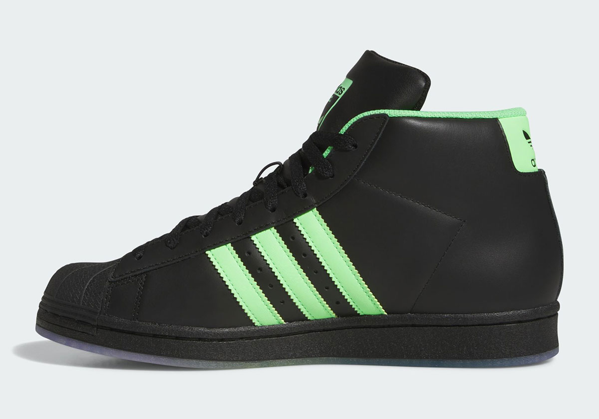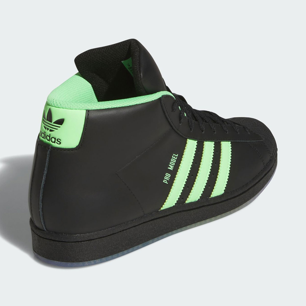 adidas has been pushing the Superstar heavily in recent months, but what about its predecessor? Despite being an adidas.com mainstay and crucial part of the brand’s hardwood legacy, the adidas Pro Model (aka the high-top Superstar) isn’t a shoe that makes headlines often. Collaborations and standout GRs seem to be the only releases that warrant sneakerheads’ attention, the latter of which includes this fresh “Core Black/Lime Burst” colorway.