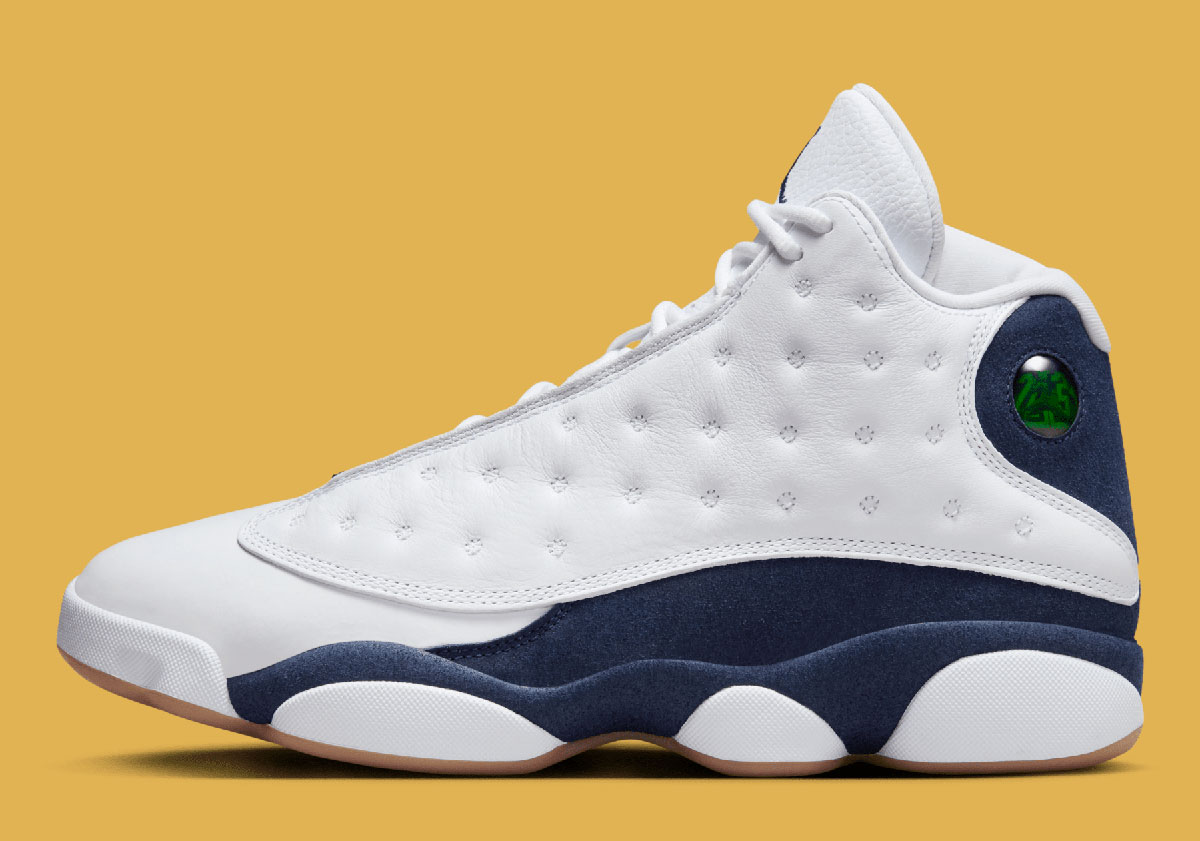 In comes the Air Jordan 13, the sneaker that co-shares the title as the last Air Jordan worn by Michael Jordan in a Chicago Bulls uniform. The high-top, leather-laden, well-padded sneaker isn’t all that appropriate for hooping in today’s modern game, which is why Jordan Brand is offering the model is a clear-cut off-court casual look. First, we’re getting the gum sole on the Air Jordan 13, a truly rare sighting on the design inspired by a black panther. The upper is a perfect match for that yellow bottom, appearing in a premium white leather and dark Midnight Navy suede for a release that leaves little to no room for criticism.