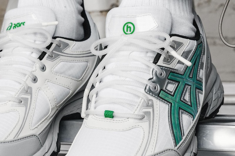 A water-resistant version of a wallet-friendly ASICS trail runner from the latter half of the 2010s (it was released in 2017, then dropped in a slightly updated iteration in 2019), the GEL-Venture 6 offers a hybrid look that's half road running and half trail running. HIDDEN.NY has amped the silhouette up with a green Tiger stripe, light grey accents including a rubberized toe cap and translucent, co-branded tongue tags split between HIDDEN.NY and ASICS logos.