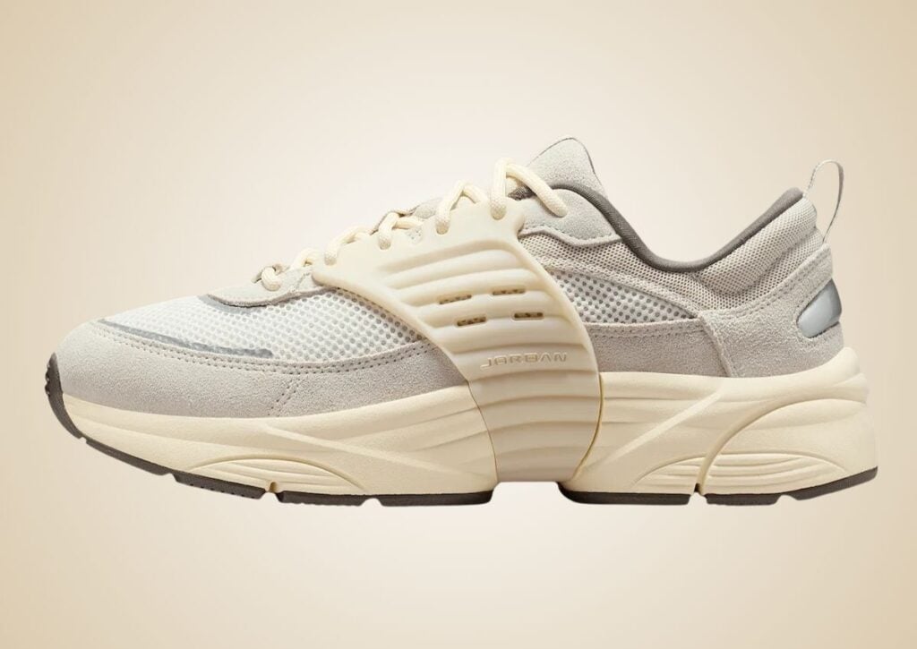 Going over this Jordan Trunner O/S, it features a Light Orewood Brown, Phantom, Muslin, and Ridgerock color scheme. As for the build, it is constructed with mesh across the upper for ventilation, while suede lands on the overlays of the panels, forefoot, and heel. The signature mid-foot cage connects to the lacing system, and for stability, it has a shank plate. Most of this pair is highlighted in Beige shades throughout, while Silver appears on the heel with 3M reflective accents. Other details include a mesh tongue and a Brown rubber outsole.