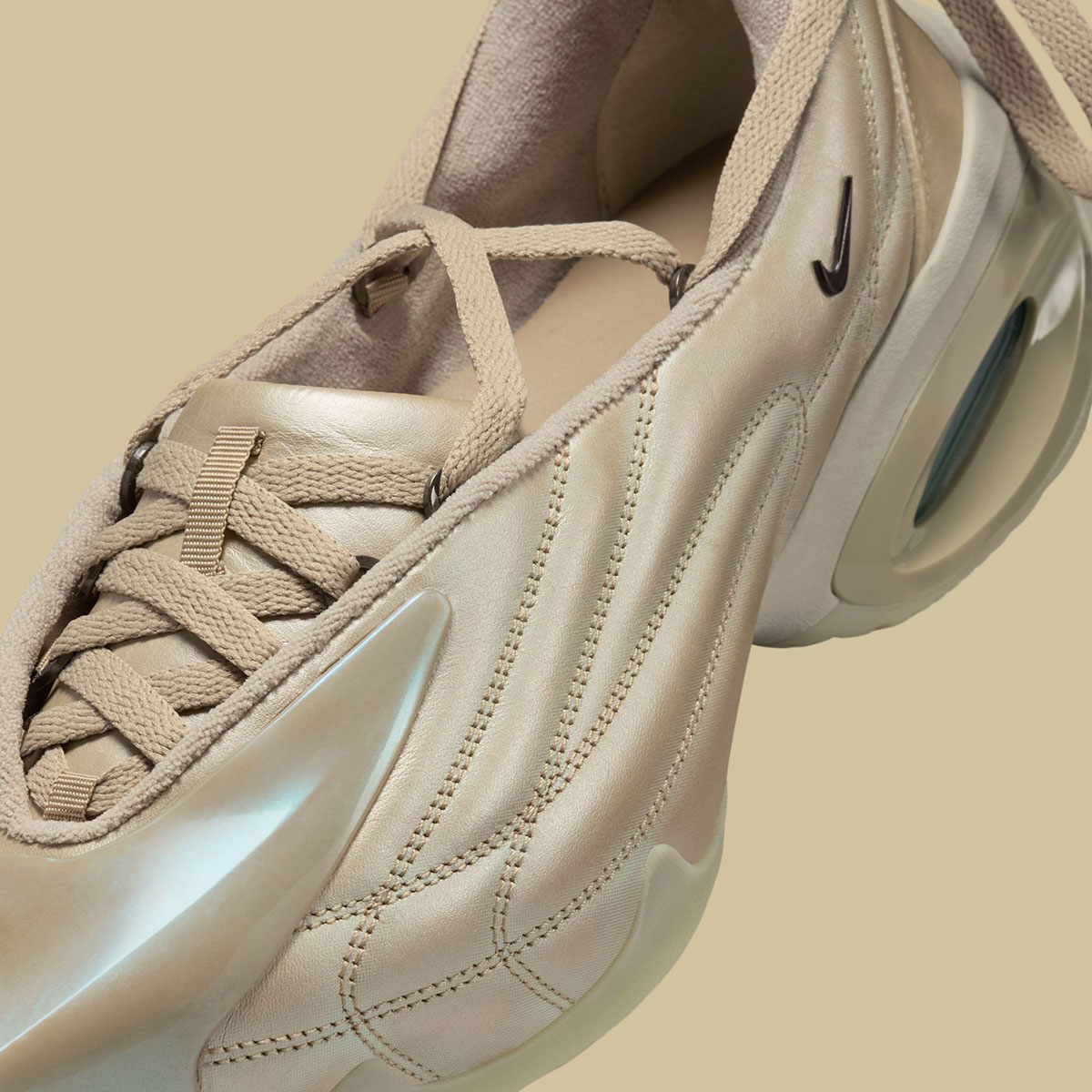 Even if it bears the full Air Max Muse name, you’ll immediately clock that only about 50% of the original design sticks around for this fashion-minded reimagining. Namely, the segmented sole platform—chunky at the heel and slim at the toe—is unchanged. The upper is almost entirely unrecognizable, imbuing the ballet air with a hollowed-out midline and a pointed toe. In a cute touch, the tongue does stick around but chops off more than half of its volume as it pushes toward the very front of the design. The TPU pointed toe cap and ridged sidewalls both carry glossy finishes, especially effective in the black patent colorway shown here. To round out the offerings, a trendy beige and a feminine pink/red accompany their nocturnal counterpart.