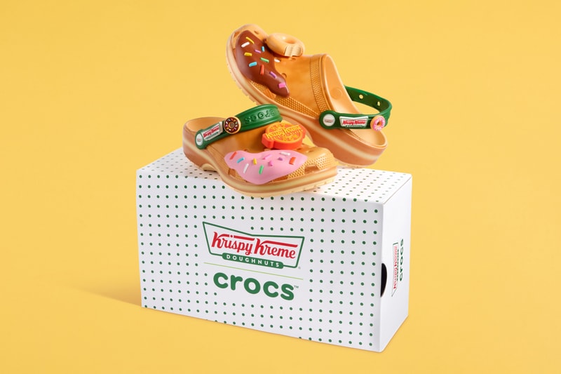Product Name: Krispy Kreme x Crocs Classic ClogSKU: 211443-78ZRetail Price: $80 USDRelease Date: August 5Retailers: CrocsCrocs and the Classic Clog are no stranger to collaboration. The brand and its iconic slip-on have continued to team up with a wide variety of partners, from the Demon Slayer franchise to Swarovski. Next up is a project with the governors of glaze, Krispy Kreme. The donut specialists are also known for working with others, having most recently celebrated PAC-MAN's 45th anniversary.Our first look at the Krispy Kreme x Crocs Classic Clog sees the slip-on presented in an original glazed-esque brown. Joining this is a nod to Krispy Kreme's chocolate iced with sprinkles donut on the left shoe and strawberry iced with sprinkles on the right. Krispy Kreme's classic green is present at the strap while five Jibbitz charms offer additional ways to celebrate the brand. Each pair also comes in a thematic shoe box that recreates Krispy Kreme's instantly recognizable donut boxes.Pairs are scheduled to drop on August 5 via Crocs at a price of $80 USD. In addition to this, early access can be earned on August 4 by visiting any participating Krispy Kreme shop and scanning a Crocs QR code. Any guest who wears Crocs in stores on August 9 can receive a free original glazed donut too. View this post on Instagram A post shared by Krispy Kreme Doughnuts (@krispykreme)Click here to view full gallery at Hypebeast