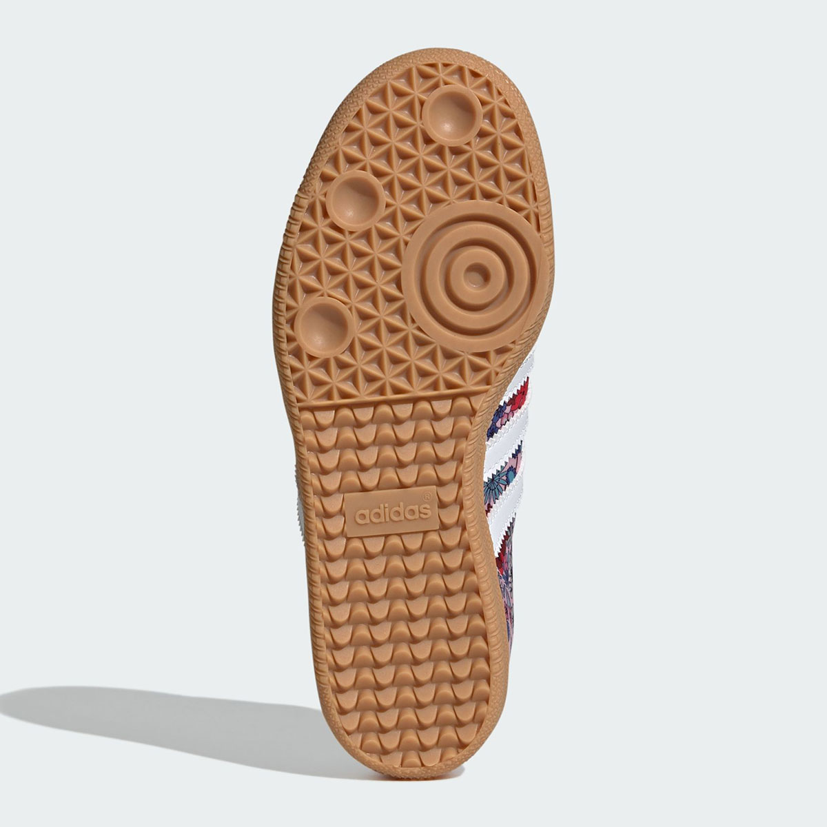Once again, Liberty London’s iconic heritage in silk sourcing comes through via a patterned floral base, featuring a mix of red and blue blooms. While the formula is familiar within the Liberty London x adidas catalog, the department store’s deep archive of prints helps ensure the duo’s releases never feel stale. A pink suede toe cap pairs with white leather on the Three Stripes and backtab, while light brown gum soles ground the look underfoot. Stitched florals frame a Trefoil on the tongue, and Liberty London x adidas co-branding appears on the insoles.